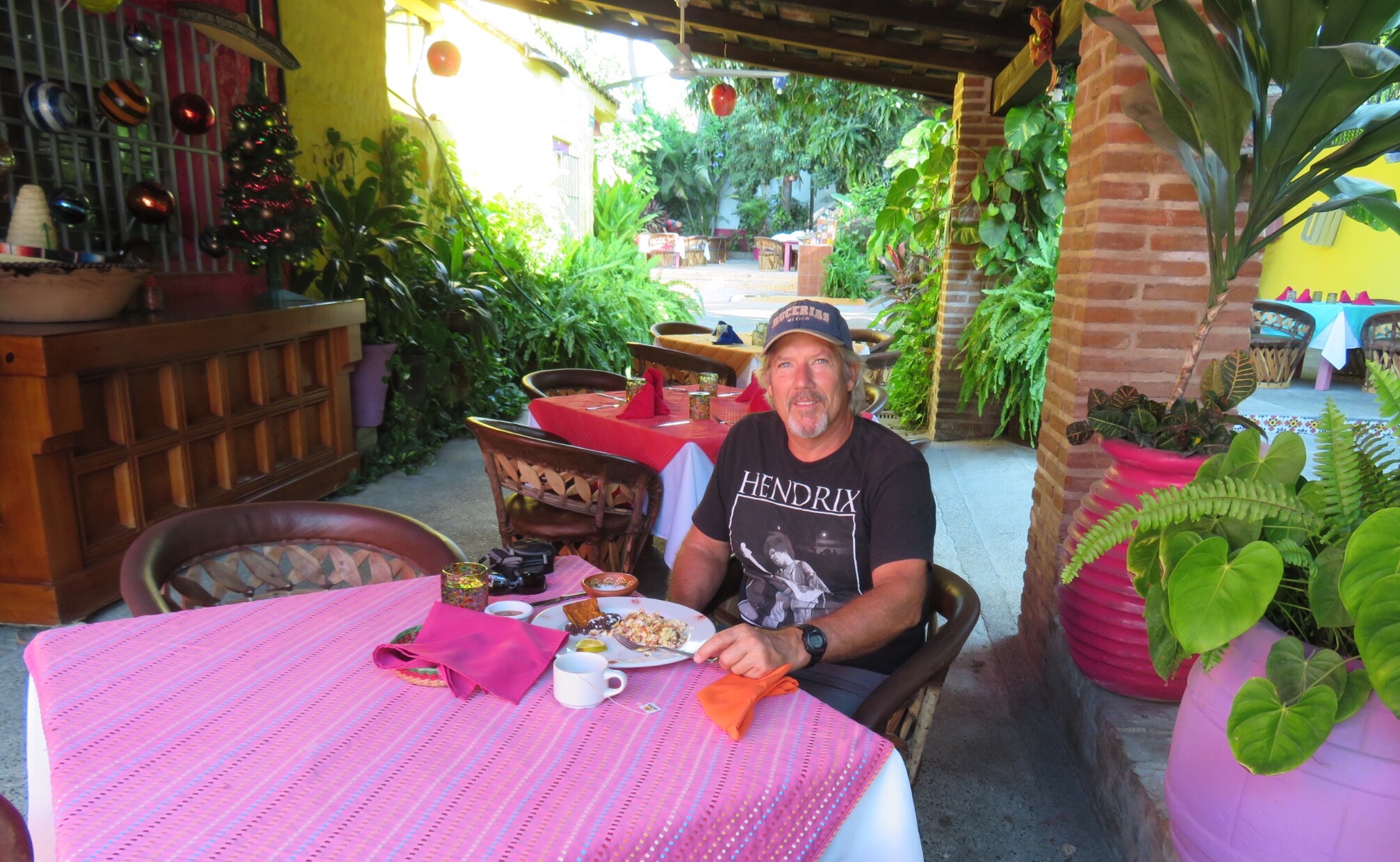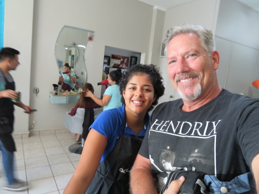 The ten o’clock van was full going into town this morning. The couple two doors down with the little girl and their friends from Ohio were all heading to the beach with all of the coolers and beach gear. Joaquin dropped me near the salon and I searched out a breakfast spot to grab a bite to eat and relax until my appointment at 11:00. Found a little restaurant, Rosa Mexicana a few blocks away and ordered up some scrambled eggs. I was the only patron on X-mas eve morning. Food was just okay and the prices were a little high. Funny how the perspective changes, a three dollar breakfast is overpriced.