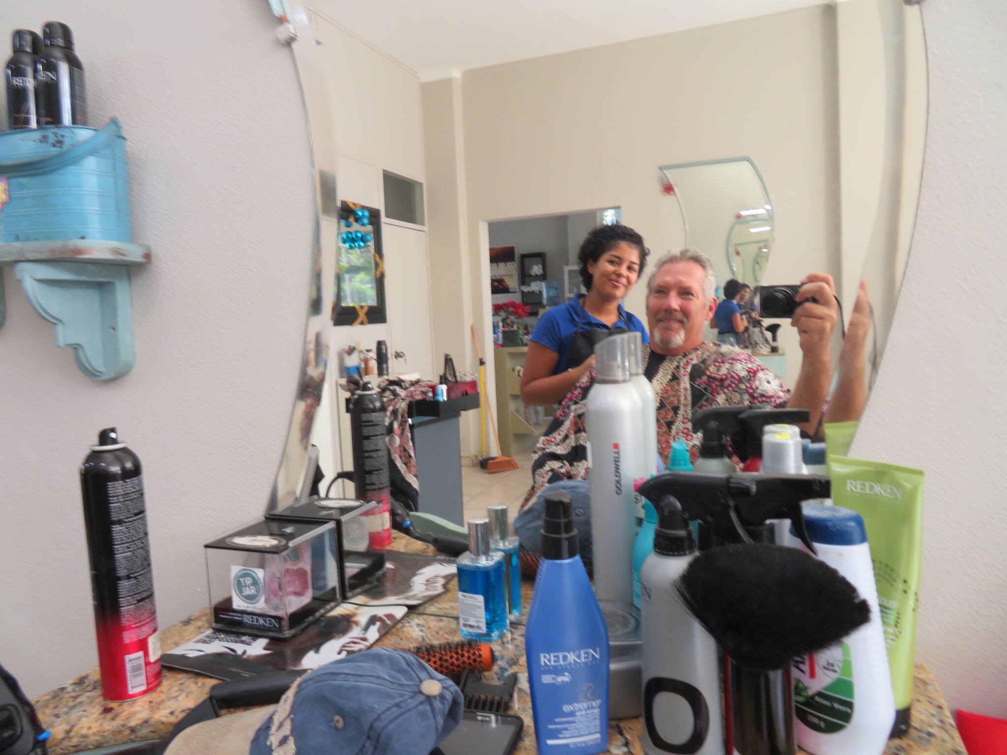 Arrived at Fer’s salon right on time and sat in a chair to wait while other clients were getting the finishing touches on their Christmas makeovers. There were two chairs for waiting in the foyer about three feet apart facing directly at each other. There was already another older gringo sitting in one so I sat and we were eye to eye awkwardly trying not to stare at each other. It was comical really. The other guy gave up trying make like he was looking off in the distance and closed his eyes and meditated until my name was called.