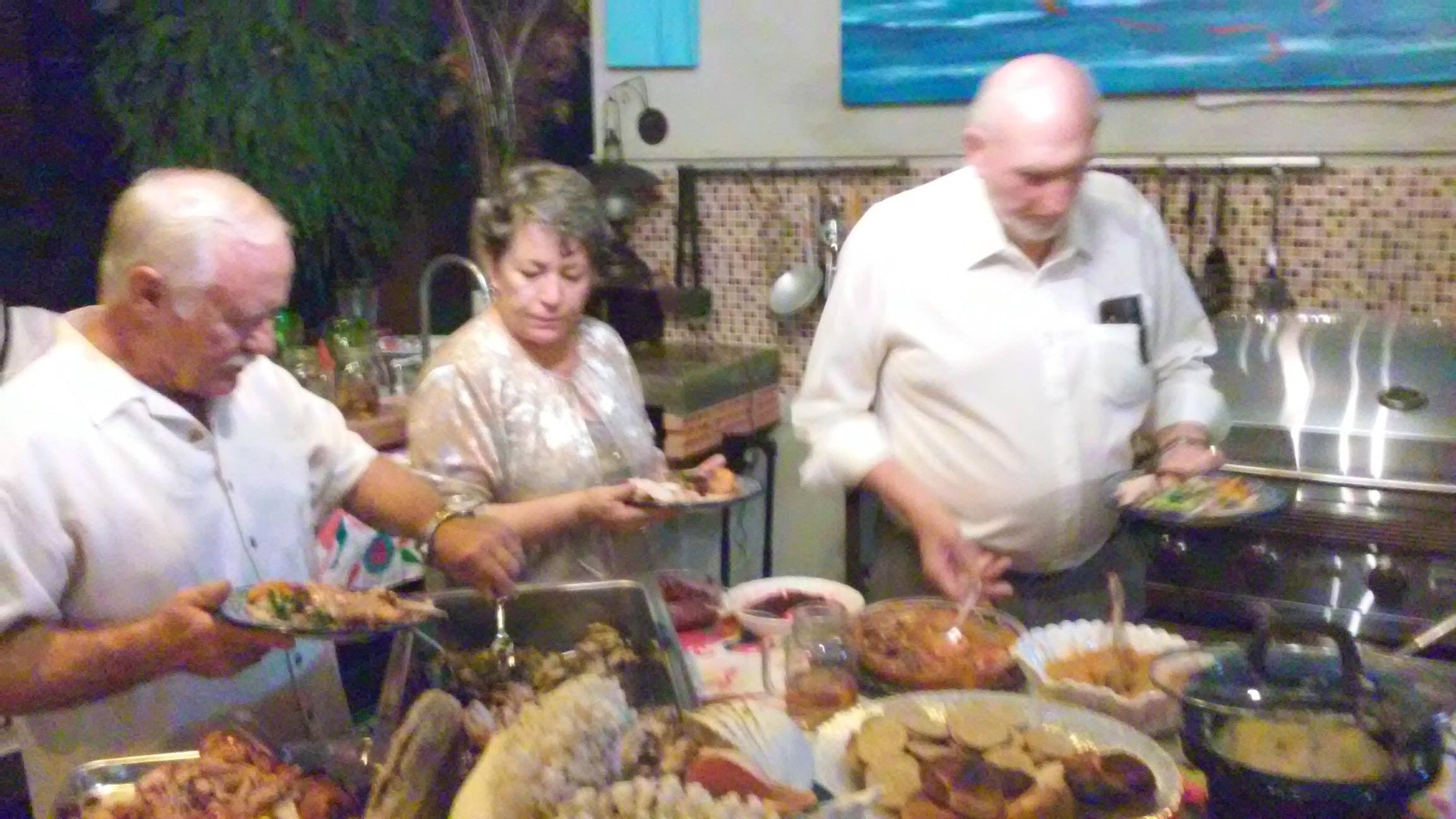 Set up my tray of appetizers, got showered, then went over to Lupe’s for her Christmas dinner party. Not being the most socially adept guy, I was feeling a little awkward at first standing there sweating in my guayabera shirt. A friendly guy named Dan rescued me, engaging in conversation and introducing me to others as they came by. He and his wife, Debbie are boat captains and live and work out at the marina. There were about 25 to 30 people from all walks of life, an interesting and eclectic mix of locals and expats.