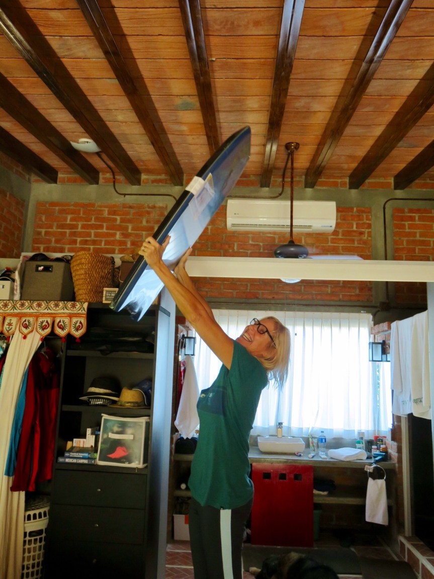 The full moon illuminated our path for the ride up the trail. A cool breeze kept us comfortable blowing through the mango trees as we dodged the stretch of broken bricks that had been tossed into the ruts to help bring the uneven dirt surface up to a semblance of levelness. A trio of young women wished us a ‘buenas noches’ as we rode past and we were soon approaching the gates at Los Arroyos Verdes. We gave the guard at the gate a couple robust rings of our bells as we rolled into view and he dropped the chain and let us pass. Spent the rest of the night organizing and tending to things around the house.