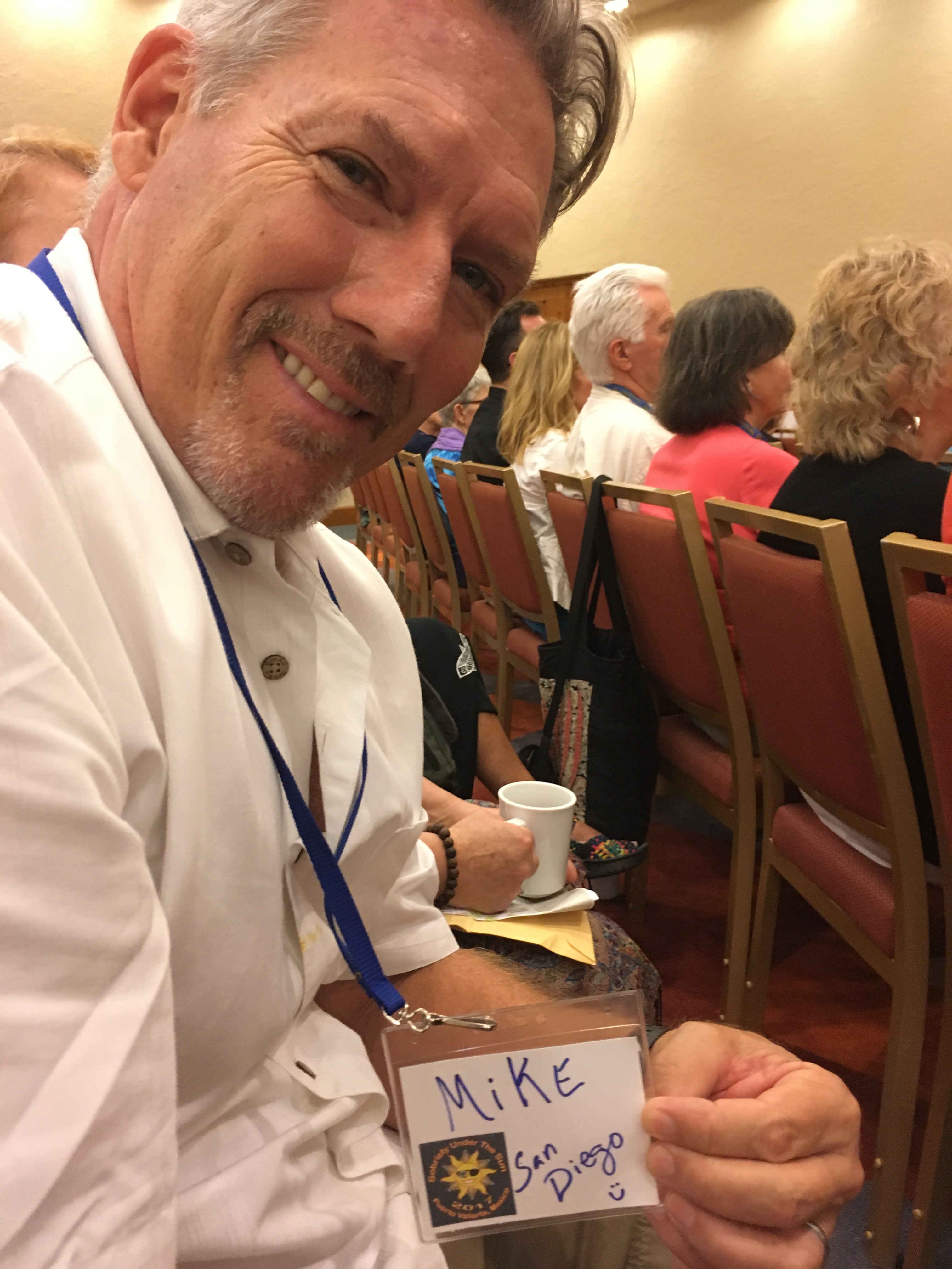 A full carload. The couple who are driving us down have two of their friends visiting from Canada to attend the conference. We all squeezed into their SUV and drove smoothly through the lighter than normal Friday afternoon traffic. At the Westin Marina hotel, we found the registration area where PJ and I got signed up. Quite a few of the attendees were already down in the conference area on a large patio outside of the ballroom. We munched a few snacks and bought a couple of t-shirts.