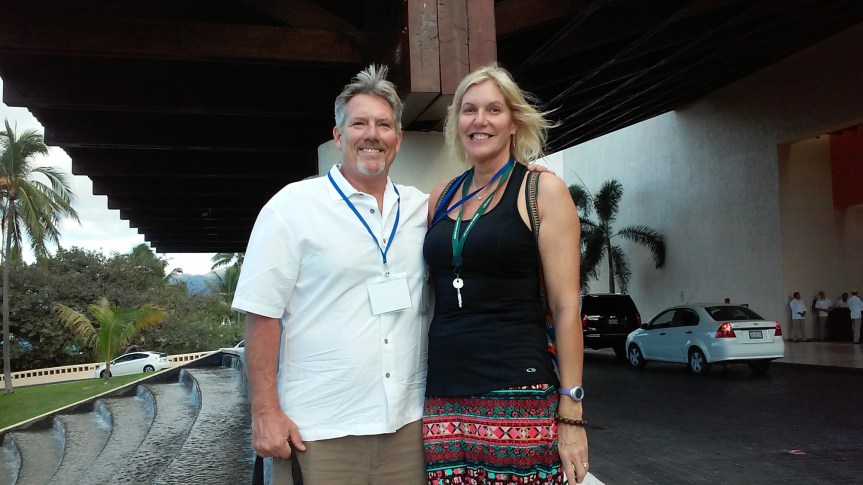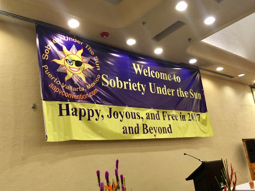 Got right out of there when class was finished, grabbed my Guayaberas shirt from the cleaners next door, then caught a taxi back to Los Arroyos. Reheated a bowl of the scrumptious vegetable soup I had put together the other night. Served it up with a scoop of Jasmine rice and a dab of refried beans. Our friends in town are picking us up at 3:15 to go into PV to attend the ‘Sobriety under the Sun’ AA convention going on this weekend down at the marina. We caught a quick after lunch nap and were waiting out at the curb when they pulled up.