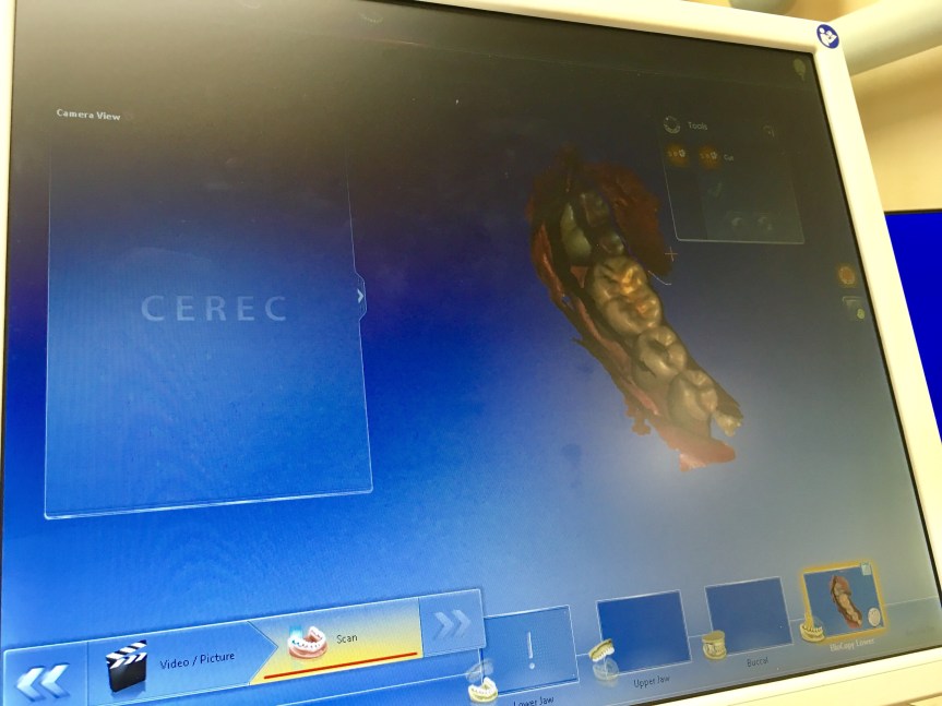 After a quick stop at CVS for some needed toiletries, I made my way over to Dr. Bell’s dental office in Carlsbad. It’s a father & son operation, a pair of local surfers who also happen to be awesome dentists. I’ve been going to them for years and it’s always a relaxed atmosphere for a decidedly unrelaxing aspect of health maintenance. I got set up in the chair and the technician took some x-rays to try to ascertain what’s causing the pain in the lower right molar. Geoff, the elder Dr. Bell, detected a crack in an older large filling in the tooth and we set up an appointment to put a crown in its place.