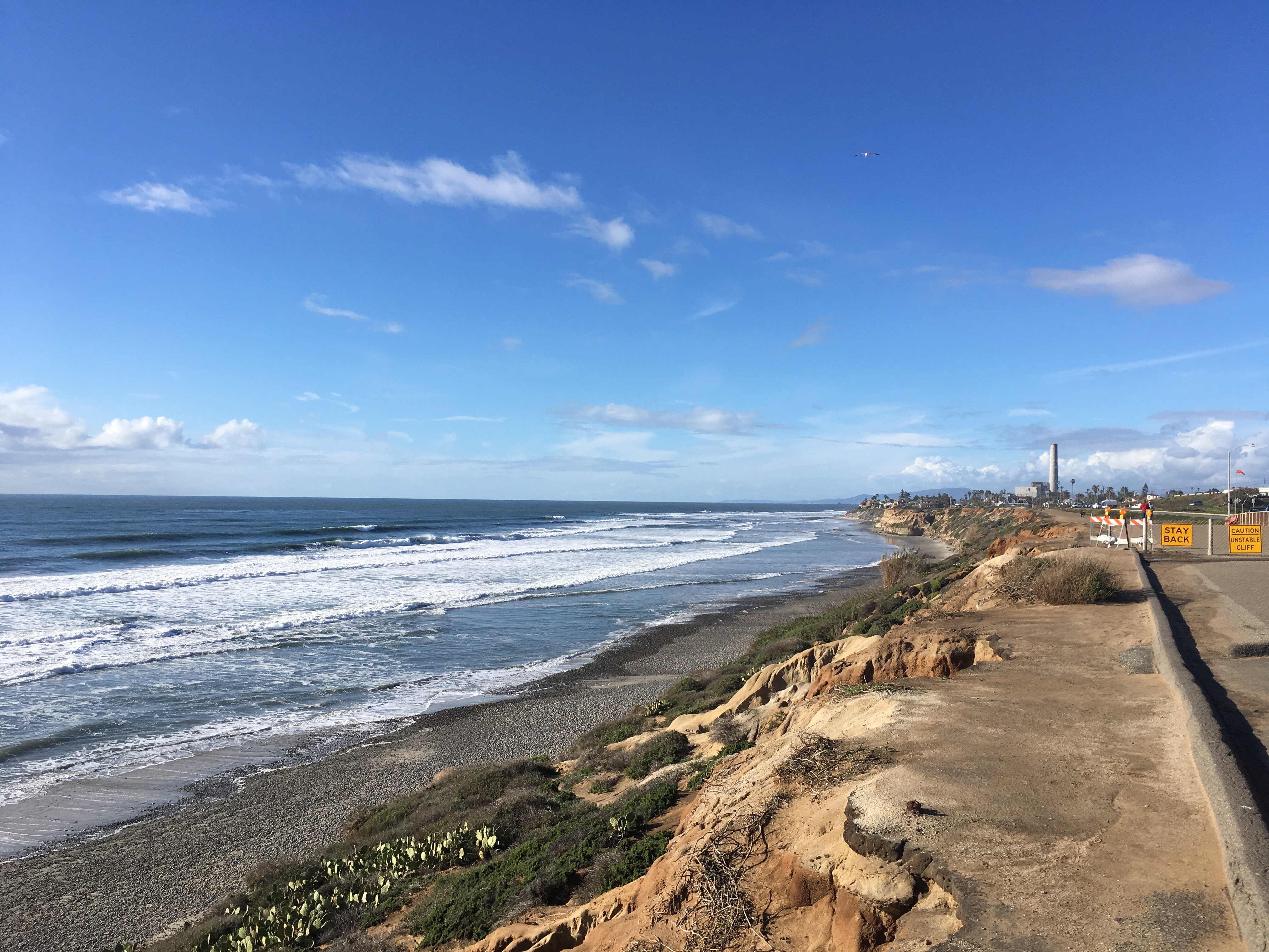 From Costco, I headed across the I-5 to the beach and walked along the bluff for a little fresh air. The sun had made an appearance and was shimmering on the wind kissed surface of the waves left over from the storm. There were still patches of black clouds hovering out to sea with fingers of rain lowering onto the ocean. The rubber on the nosepiece of a pair of Spy sunglasses I had bought at their store had deteriorated so I was going to bring them in to see if they could switch them out. When I pulled up to the outlet, it was shuttered up and no longer in business. Consoled myself by picking up a couple of winning lottery tickets at Berry Brothers before turning the car back towards Oceanside.