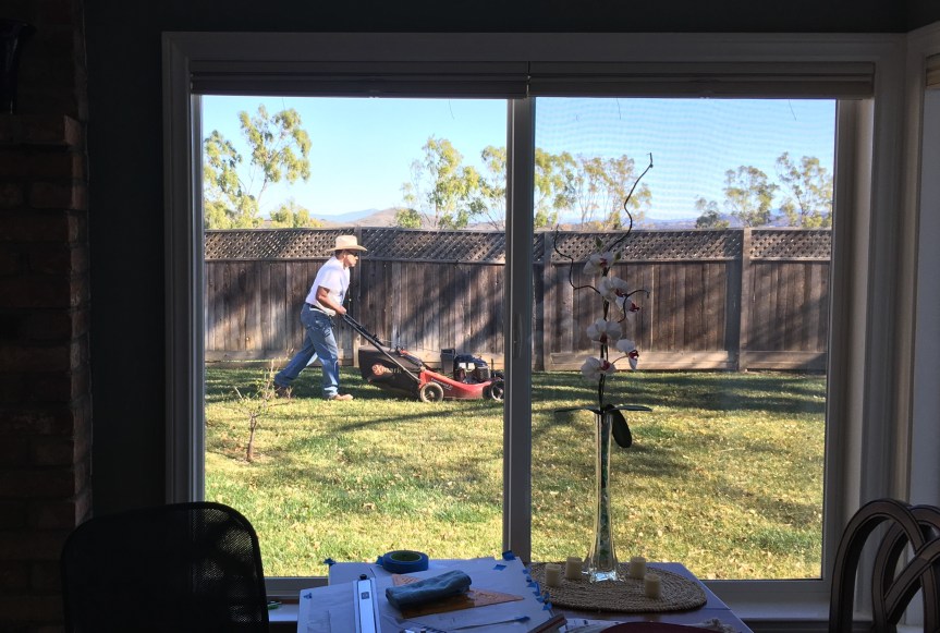 Back at Ray’s place, our long time lawn guy Joel was out mowing Dad’s backyard. I tried pumping him for undercover information on our old house, but he was discreet and only said that he missed PJ, especially around Christmas when the house would be covered in decorations. He said it was ‘her time to shine’. I guess the new folks aren’t as big on decking the halls. I left him to do his business and went in to pack up my bags for the retreat. Made up the bed, then drove on over to the mission to partake in some much needed silence and contemplation.