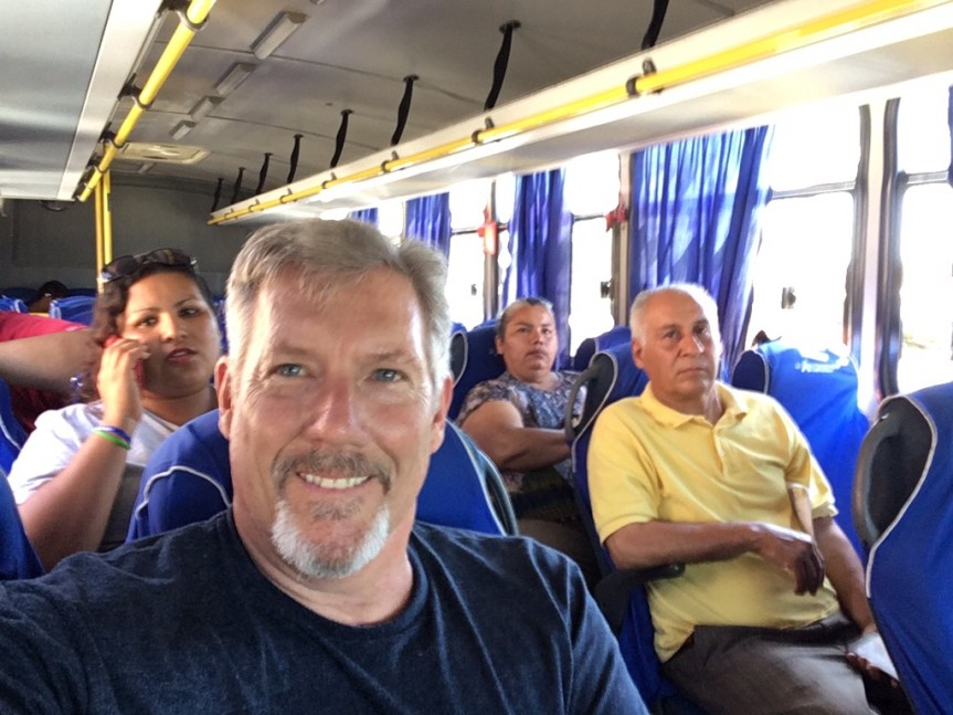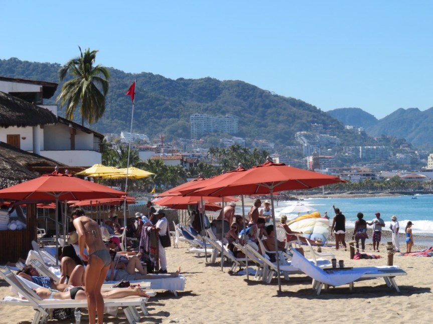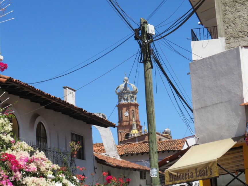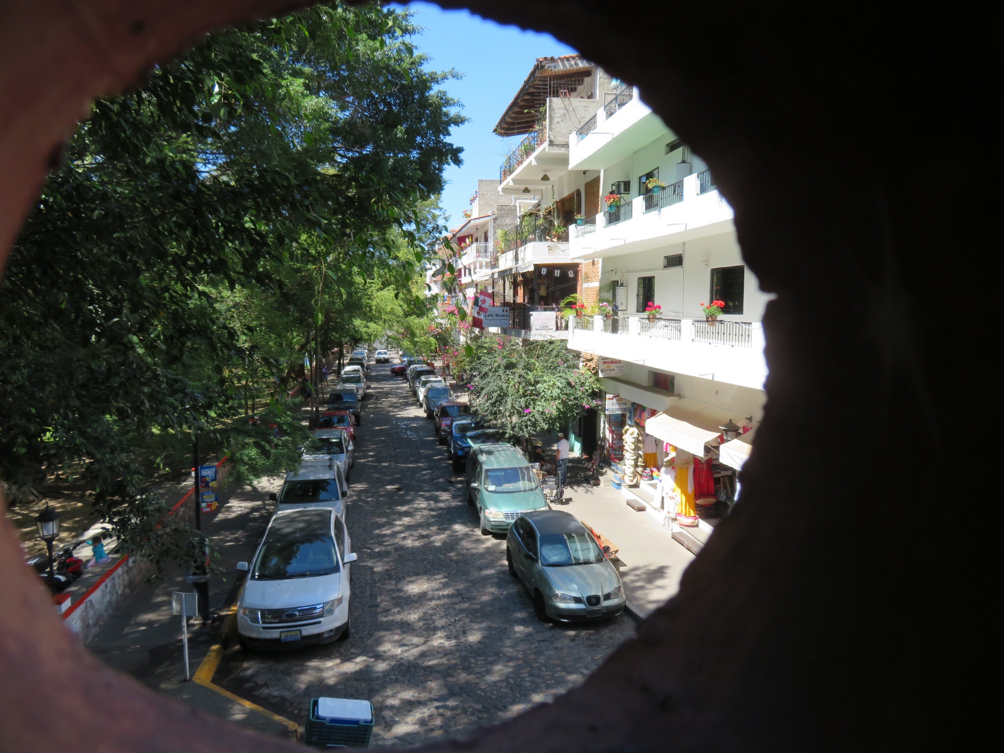 Today, PJ barely got up with enough time to make it to her Spanish lessons. I took the dogs for a spin then showered up and boarded the shuttle into town. Joaquin had a full van load and I jumped out at the Santander to run across traffic and catch an ATM bus into Vallarta. Only took a minute for one to roll up and I was off and running. Tight little plastic seats on this one, barely fit. Asked the driver to let me know when we were at the last stop before he turns left but he had me off the bus several blocks early.