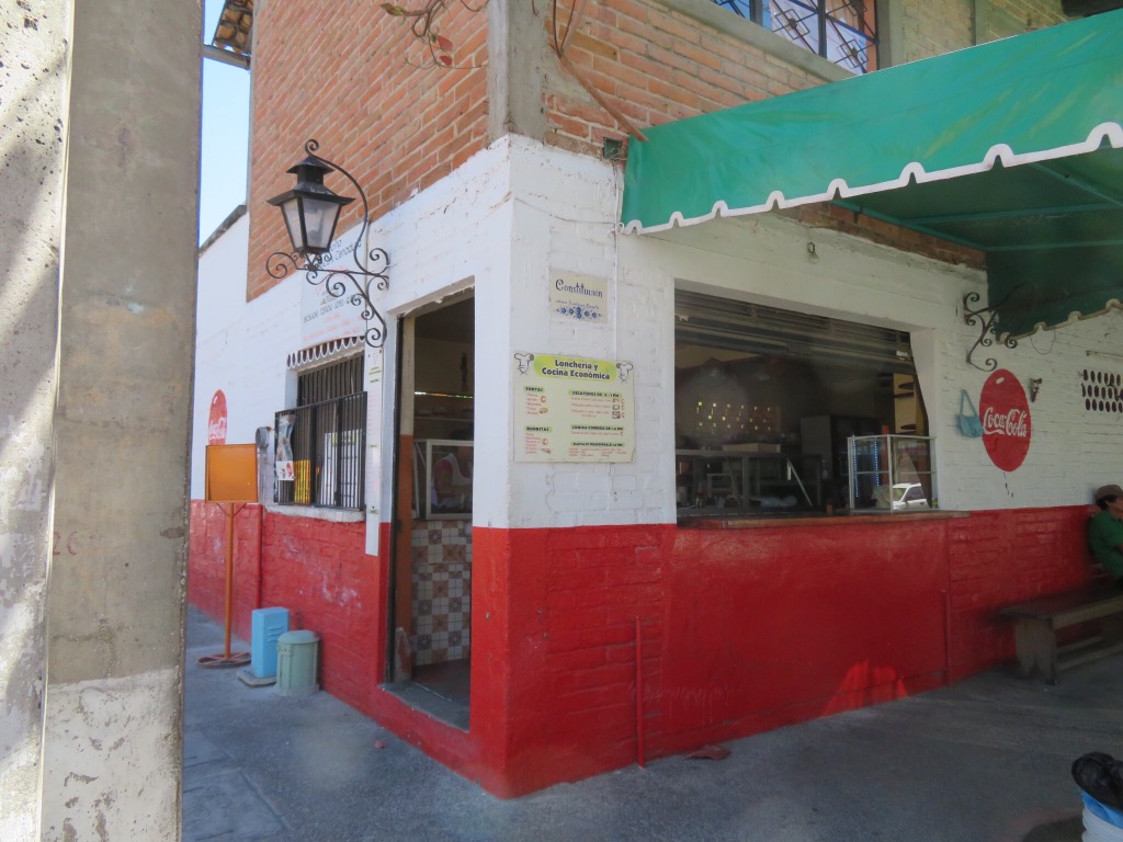 I walked a few blocks back until I came upon an old school loncheria offering a comida corrida for 56 pesos. Pollo, picadillo, rice, beans and a drink. The place even had the urban legend bags of water hanging from the ceiling to ward off the flies. I haven’t seen that one in many years. The food was good, the tortillas were freshly pressed and cooked, and I had my fill.
