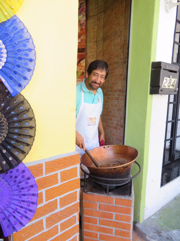 Afterwards, I headed into the market place and wandered around checking things out. Found the food booths upstairs and made a mental note for next time. My favorite garapinado guy was at his spot stirring a copper pot of the candied pecans that are soooo tasty. Picked up a large bag and headed to the Main Street looking for a bus. Right next to the bus stop was a Parisiana fabric store. So I stopped in and bought a packet of the little plastic things that are used to cinch up shoelaces and such. The one on the drawstring of my little backpack had given up the ghost so I replaced it while riding the stretch of road to where I transfer buses at the Walmart center.