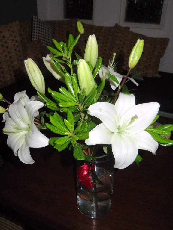 Popped into Cattleyas flowers while walking up the hill and bought PJ some white lilies to brighten up the casita. Hailed a taxi and made for home.​​