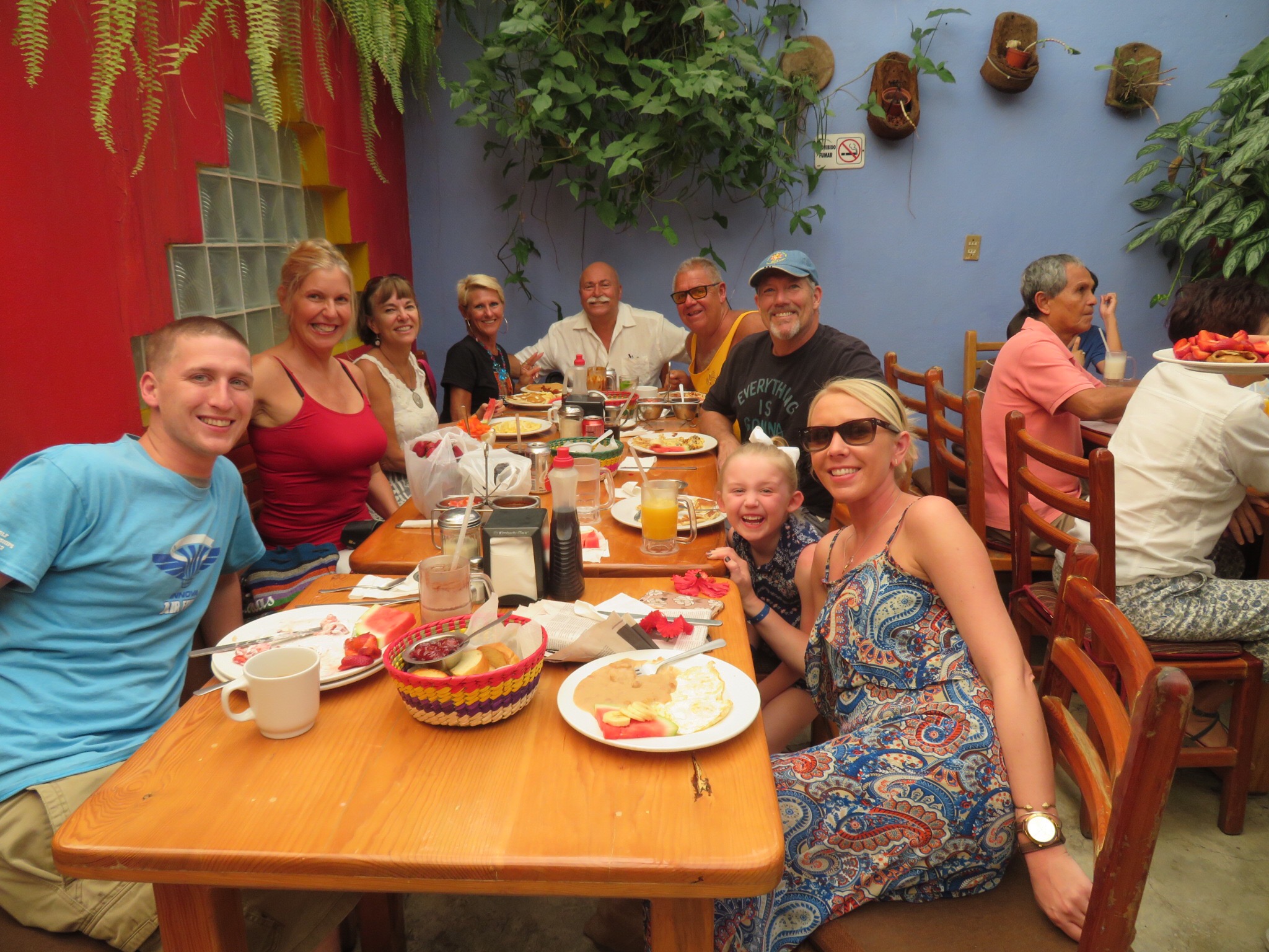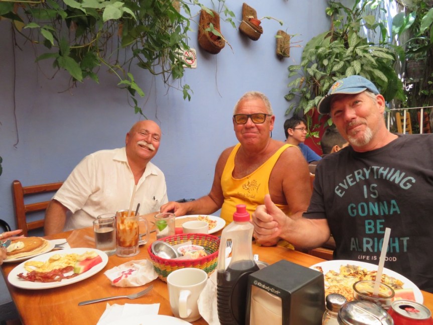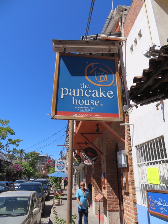 Sunday, we got up early and waited at the gate for our friends Bryce and Arlene to pick us up. We drove into Puerto Vallarta where we met up with some other friends then went out for a nice breakfast at the Pancake House. It has a beautiful open interior with lots of plants and shade. It’s a popular spot and we had to wait a while to get ourselves a seat. Friends Mike and Lori have Mike’s son Bryce in town visiting with his wife Emily and daughter Elly. Elly charmed the table as we enjoyed an excellent breakfast and excellent company.