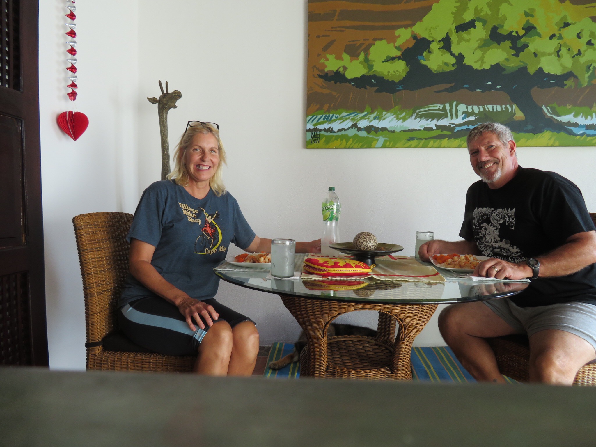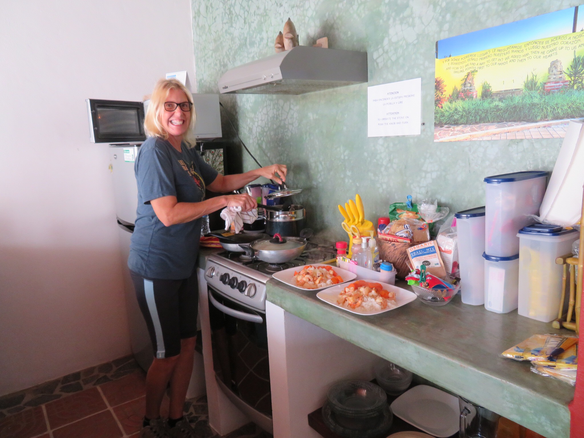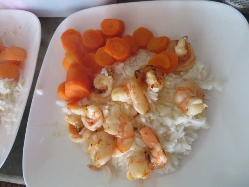 PJ cooked us up an awesome dinner of garlic sautéed shrimp she had picked up the day before at the fish market. Steamed carrots and rice rounded out the meal. In the evening, we walked around the compound and stretched our legs a little bit.