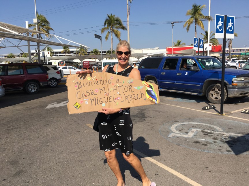 Customs was a breeze. Easily got another six months, no questions asked then collected my pile of luggage, got the green light when I pushed the button and rolled out into the lobby where PJ and Joaquin were waiting for me cheering and holding up a welcome home sign. Wow, what a feeling of relief and peace to be back in Mexico where I’ll be able to take it easy and heal up.