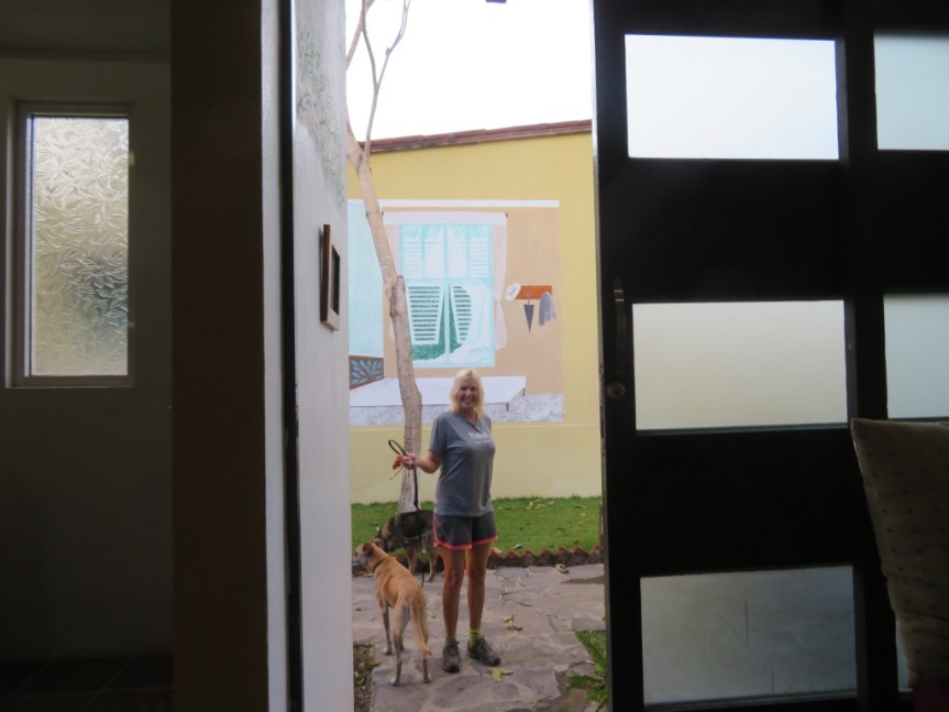 We strolled around downtown and wandered through the central market looking at the colorful offerings but buying nothing. The candy store that roasts its own garapinados was full of customers so we lined up and bought a couple of bags of the candied pecans to eat on a bench in the plaza. PJ called her sister and l hung out at a coffee shop for an hour watching a small dog charm all of the customers.