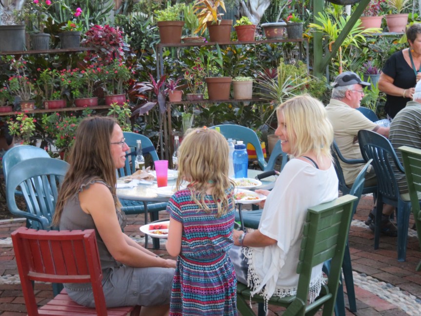 Early rising day for Spanish class over near the bar-b-que. We had a lot of fun doing little exercises for learning body parts and telling time. When we stopped in the office to pay up our expense account, we found out that we were a day off on our calculations and didn’t have to move out until tomorrow. Nice. Traded in my Jack Reacher book for another one at the book exchange and joined PJ in the restaurant for a soda while she ate a bite of lunch.