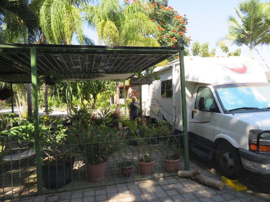 Yesterday, we spent most of the morning getting packed up, then Eduardo came by in the afternoon with the van and a couple of workmen and helped us load our gear and transfer it over to the motorhome. PJ went to work finding a place for everything and setting up house. I did my best to stay out of the way walking dogs and organizing things outside. Things seem a little tighter in the small space but we got comfortable and had a decent night’s sleep.