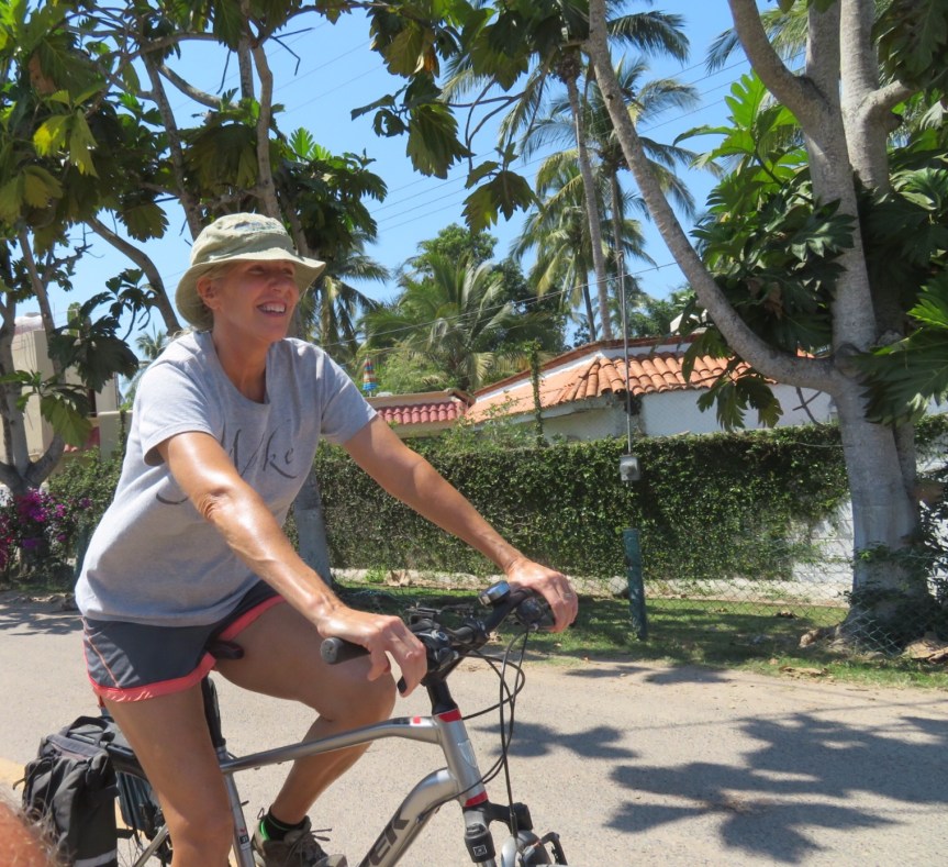 PJ is still in organizational mode. The neighbors next door left at around 1:30. We rode our bikes into town while Maria cleaned up the room. Being Sunday, many of the restaurants we were hoping to eat at were closed. We rode out as far as the highway then doubled back and ended up eating quesadillas served up out of some people’s backyard.