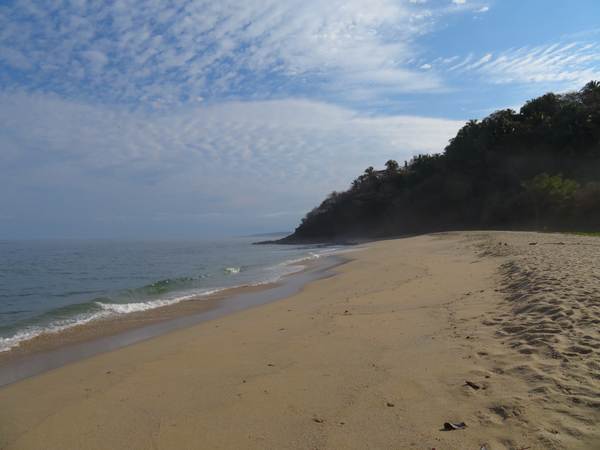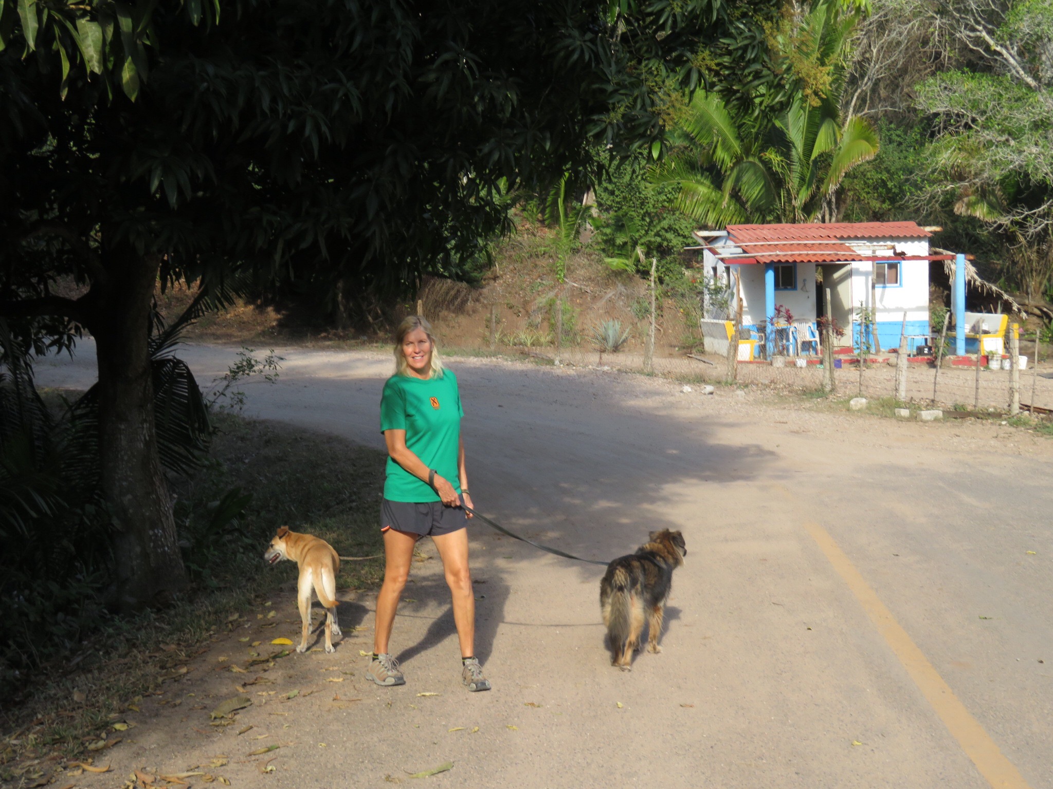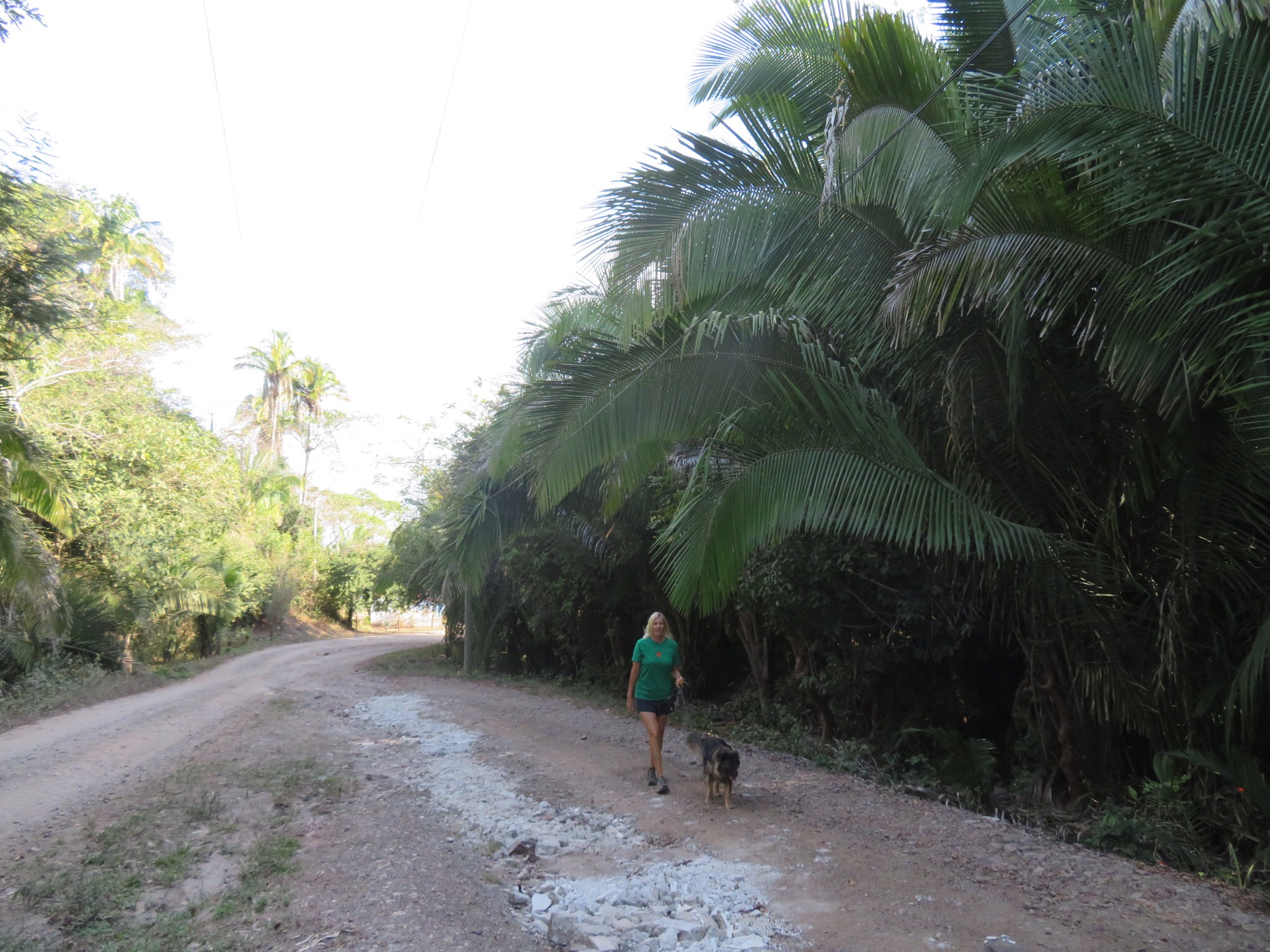 From this point, the road turns to dirt and heads slightly inland through the jungle. We unleashed the hounds and let them run around sniffing new and exciting odors to their hearts content. A myriad of butterflies in various shades of brilliant colorings flitted about as we strolled the path that leads past a few gringo houses and back down to a secluded stretch of beautiful beach at the end of the road.