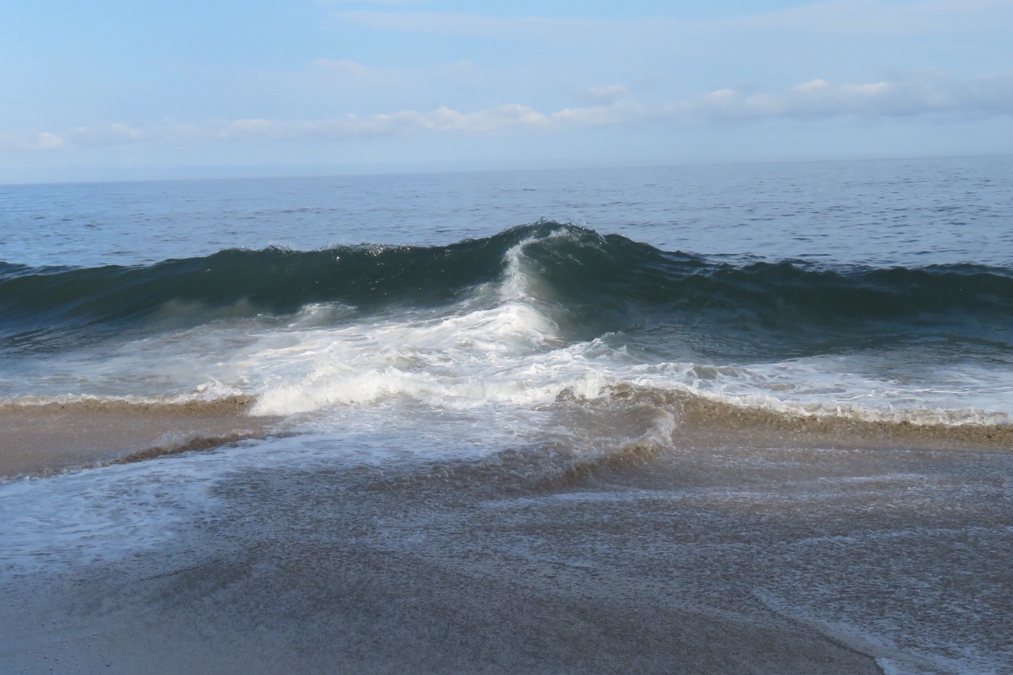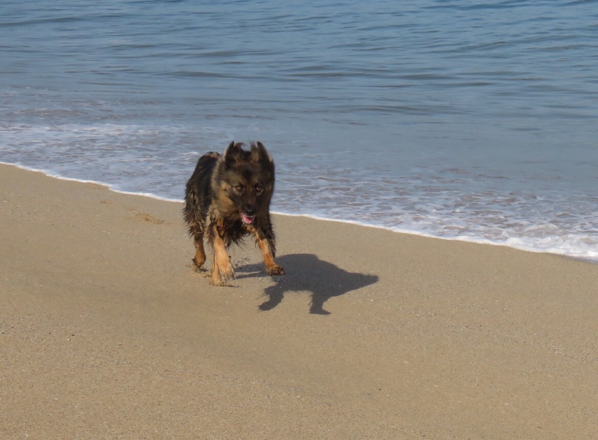 The beach was maybe a quarter mile long with rocky outcroppings on either end. Crazy swirling shorebreak hammered the shore promising strong undertows and a sandy beating for any intrepid swimmers. The dogs cut loose, sprinting down the beach chasing the ghost crabs back into their holes. Koda came close to getting one that strayed too far out onto the wet sand but it made a quick sideways move and sped back to the safety of its lair.