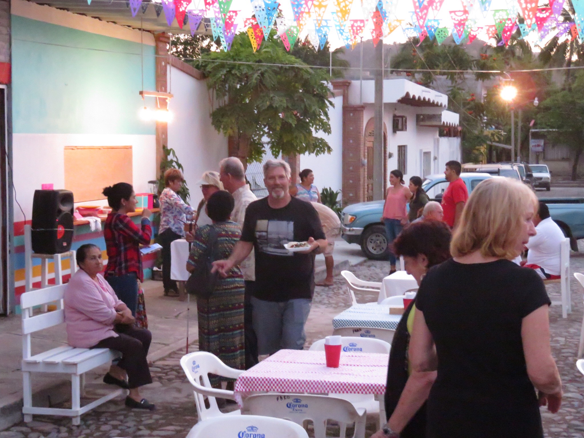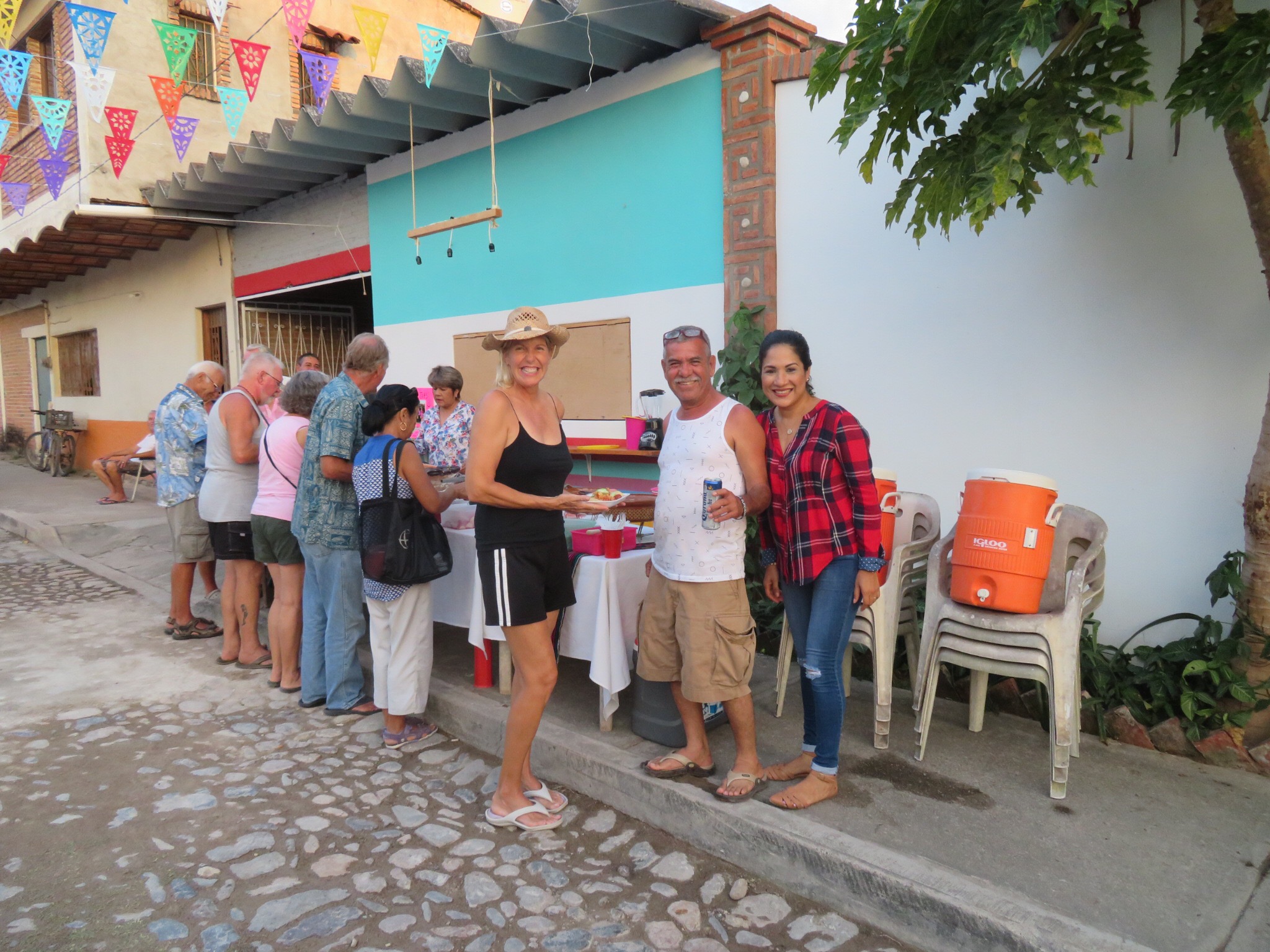 It turned out to be a fund raising event for the elementary school adjacent to the town square. They were gathering funds to build a structure for the play area that would shield the kids from the sun and the rain. Having just completed a structure to shield ourselves from the sun and rain, we felt it fitting to help bring the same comfort to the students.