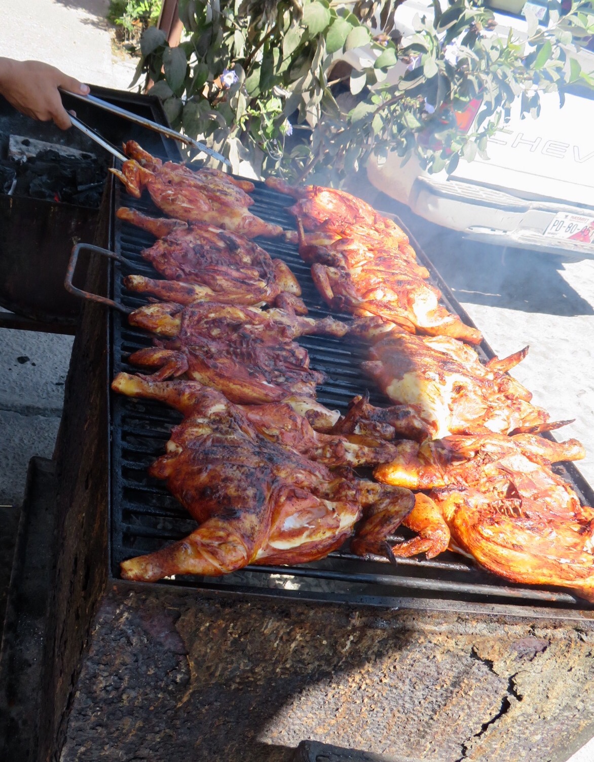 After the meeting, we ran a few errands. I got a bar-b-qued chicken from Carlos at the corner half oil drum grill. He and his brother were out grilling up the seasoned poultry. I got a whole chicken with some potatoes and cole slaw.