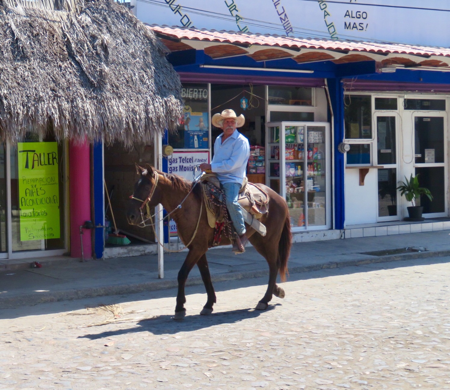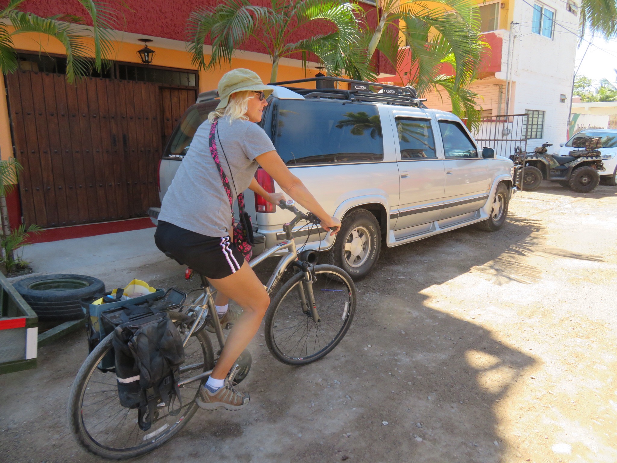Day by day there is a steady exodus of gringos from Lo de Marcos. This morning a couple of the few remaining motorhomes pulled out of the compound leaving only three lonely RVers left behind. There are still a few cabina dwellers counting down the days and for this long weekend a number of Mexican families have taken up residence. Last week, the secretary of the Sunday morning meeting was looking for someone to take her spot as she was headed back to Canada and I volunteered to be the keeper of the keys. So today was my first day setting up and chairing the meeting. We pedaled on over and opened up the building and had a good meeting.
