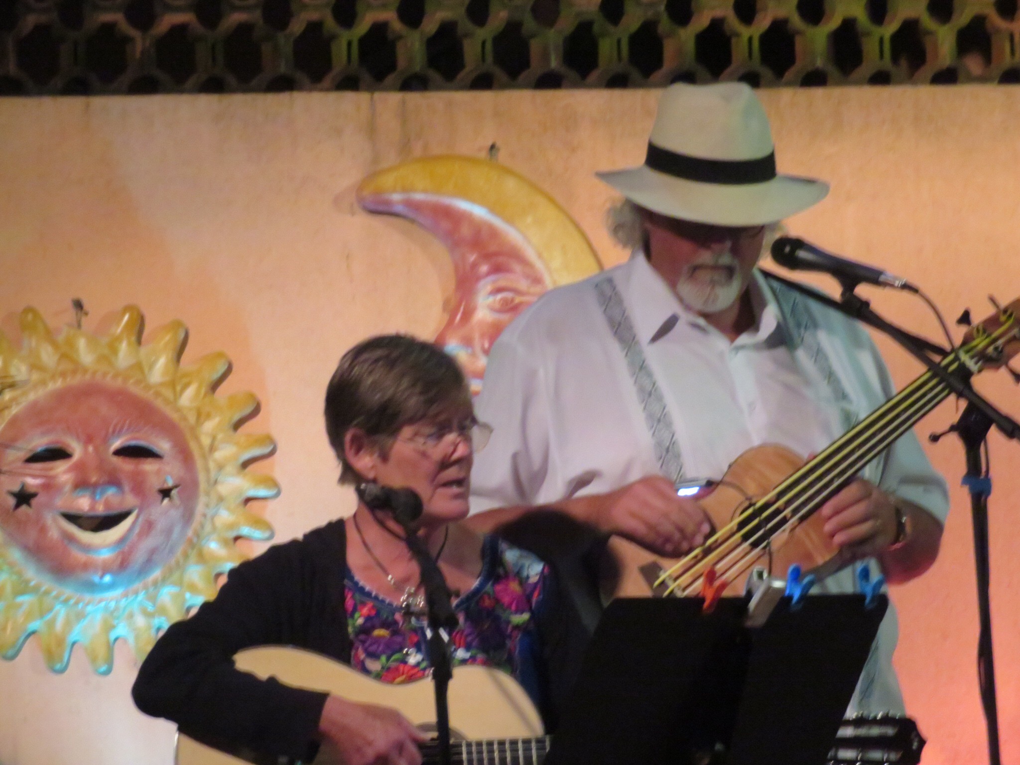 The open mike was well attended and lots of people got up and gave it their all. The highlights for me was the vegetable vendor’s son doing Mi Rancho Grande on a ukulele, Mark and Laura’s rendition of an Argentine tune and the guy with the woody golf cart’s country version of Walk on the Wild Side. The crowd all joined in when the colored girls go “doo, doo, doot, doo, doo, doo, doo, doot.”