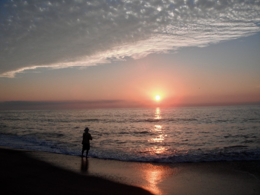 Bob quickly assessed my gear and noticed that the drag was seized up on my reel. He deftly disassembled everything, cleaned it up and lubed it with a special reel grease (who knew such a thing existed) and put it all back together. It worked perfectly after. He set me up with some leaders, swivels and other items to complete my set of tackle. We talked for a while then agreed to meet up near Olivia’s at 5:00 to try our luck fishing at the north end of the beach.