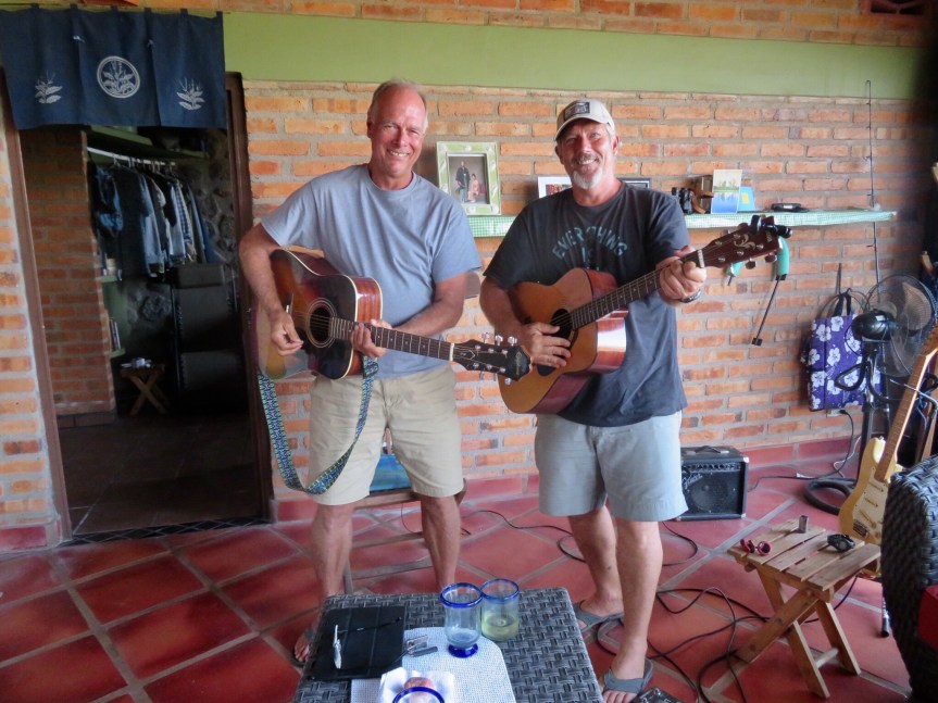 At three, I got kind of cleaned up and walked over to Tom and Chizuko’s (hope I got that close) to play guitar with Tom. They are an awesome couple from the east coast who spend their winters here in Lo de Marcos. They have a cool house with panoramic views of most of Lo de Marcos. We played a number of songs and I learned some new techniques and a couple of new songs. Now if I can only remember any of it tomorrow I’ll be amazed. We’ll see if we can work up a good duet and if I’m in the neighborhood next season, we can play it at the open mike. The atmosphere was relaxed and we sat and talked about a variety of things. Before I knew it, almost three hours had passed by. I said my goodbyes and hiked back to the pad.