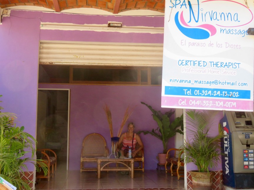 I walked into town arriving at Nirvanna a few minutes early. I sat on the couch out front and waited for Janett who showed up a few minutes late. She comes from Sayulita and traffic had been a little heavier than normal today. Things were pretty relaxed. It looks like PJ and I are the only clients in the line up this morning. Janett does an excellent massage and this time I got my full hour.
