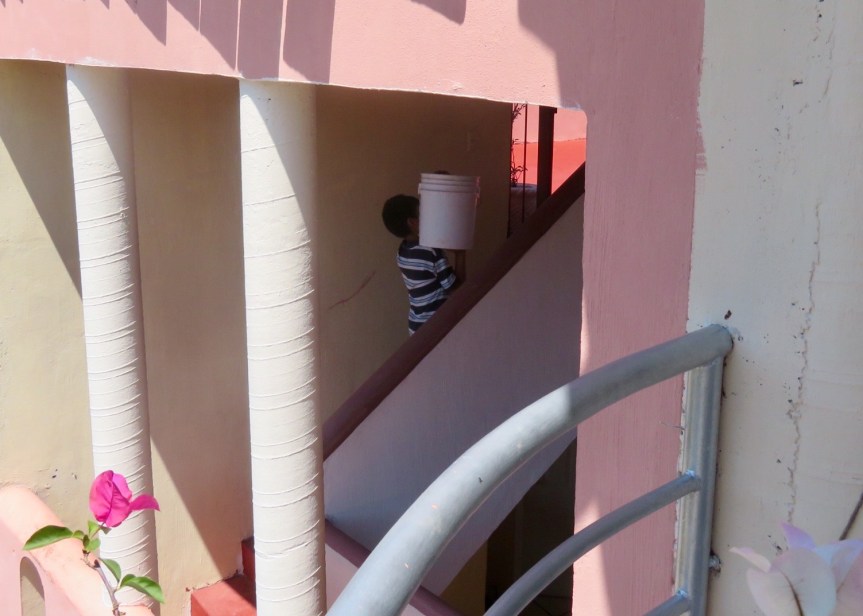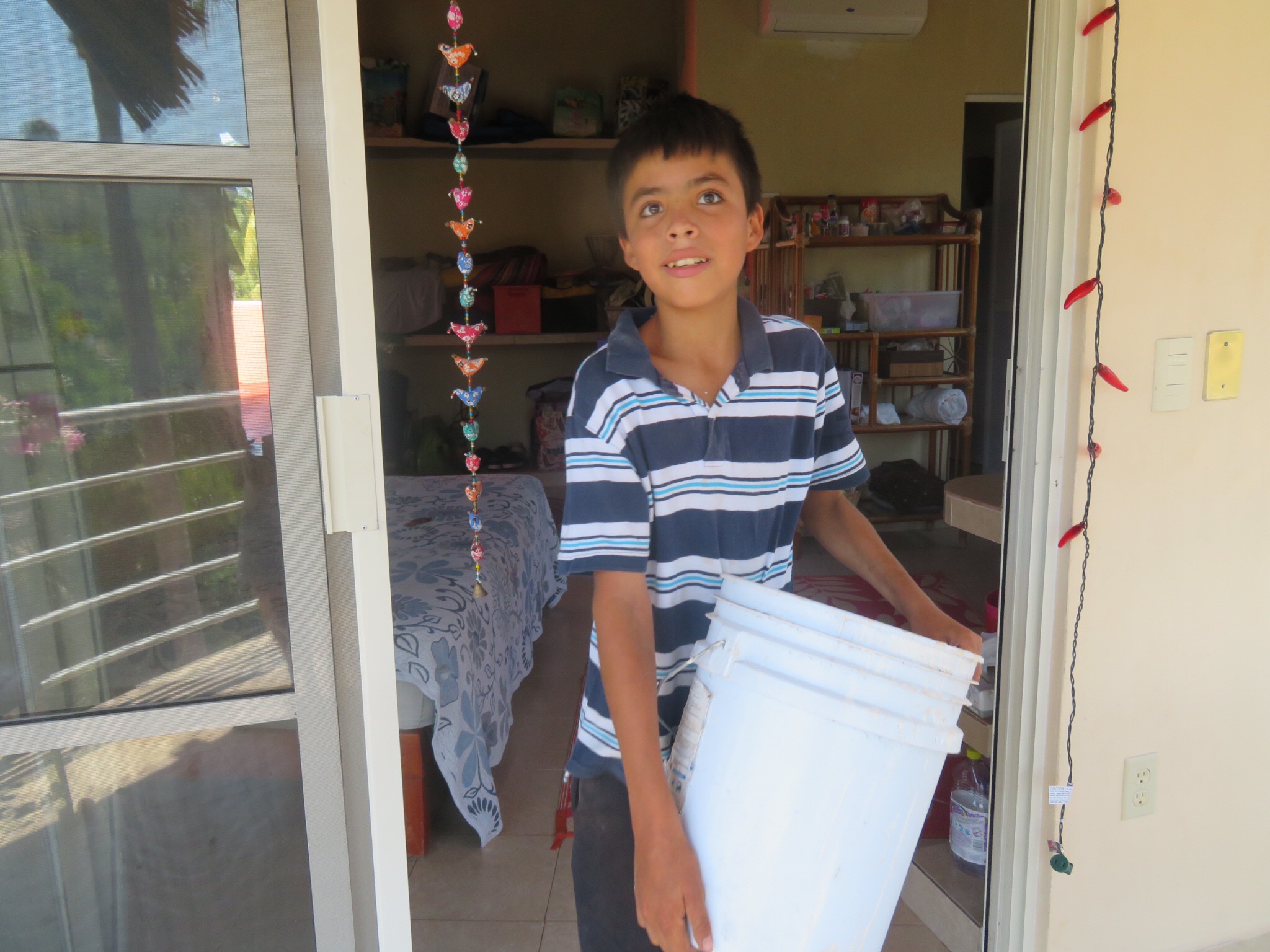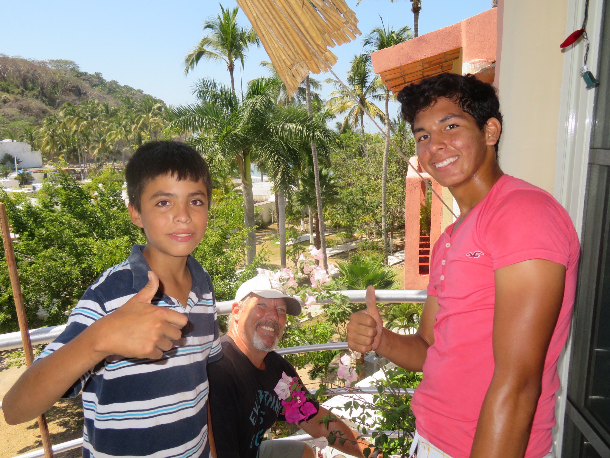 Back at the tower, I got everything stowed then went down and swept off the roof of the motorhome. I enlisted Charlie and Luis, the kids who clean up at the property, to deliver me some buckets of dirt so I can replant my bugambilias in the nice pots that Miguel brought up to the penthouse this morning. I suppose I should feel guilty encouraging child labor, but the kids were totally stoked to earn some good pesos for a short amount of work.
