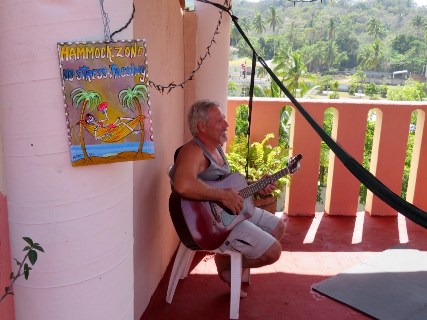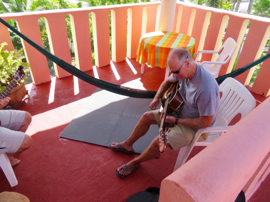 We ascended our tower and reheated a couple of tamales then did a few domestic chores. I practiced guitar and did a few things on the computer. Tom showed up at 4:00 and we played guitar for a little over an hour. Lots of fun putting together a small set of songs that we can play together. A nice breeze passed through the north balcony as we sat in the shade next to the hammock making noise. Music interspersed with interludes of conversation and too soon, Tom had to get ready to head into town.