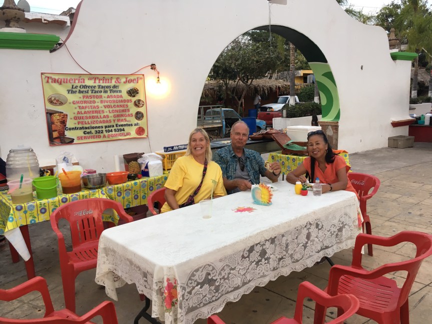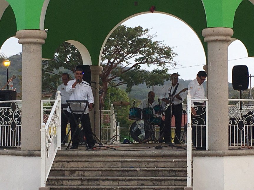 The family dining with us bade us ‘buenas noches’ then Tom & Chuziko arrived at the square and joined us at the table. They were ordering up tacos when Memo showed up and had a seat. The five of us talked for a while until the band started up then all conversation was impossible. We kicked back and listened to several songs, then said adios and headed home.