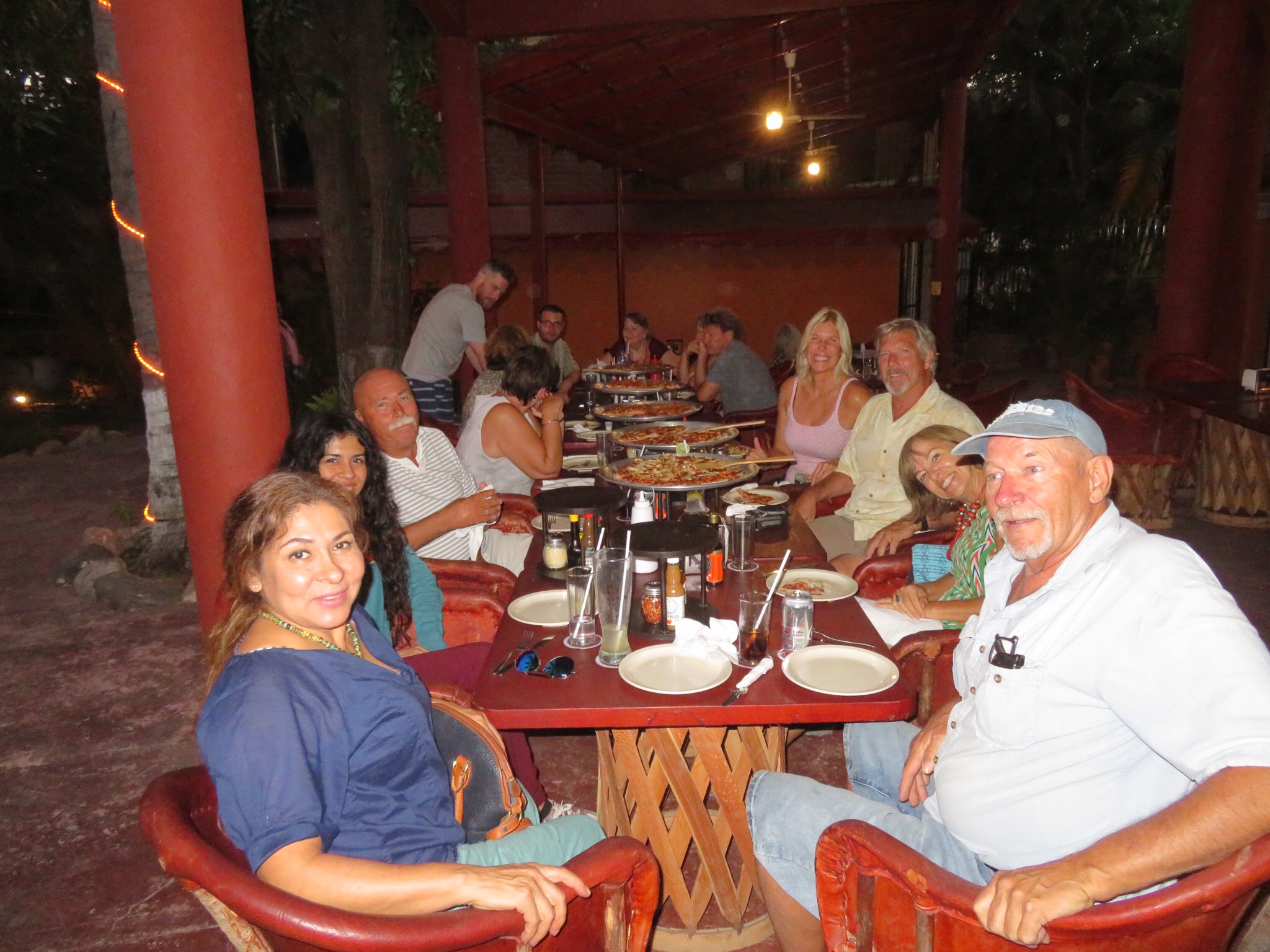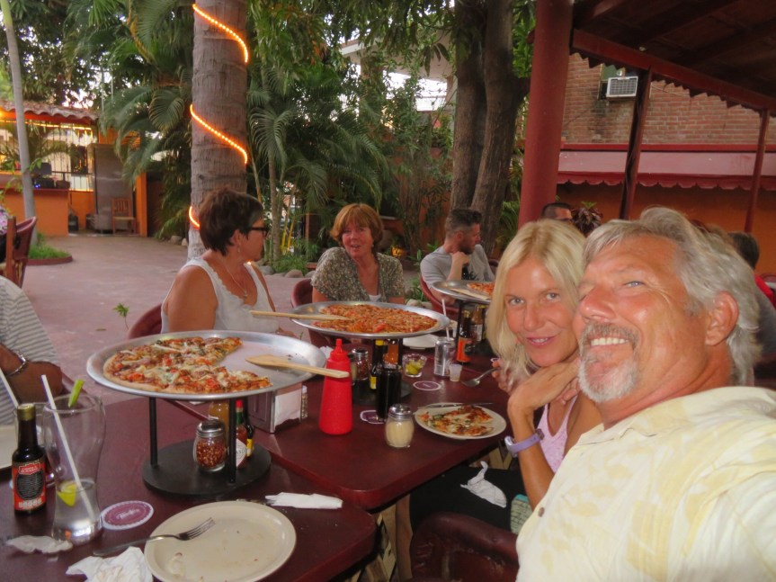 We met up with our friends and caught up on things. As the evening shadows lengthened, we gathered at Pizzanteria, a nicely outfitted pizza place over near The Drunken Duck. We had about fifteen people and I think we kind of overwhelmed them. The pizzas came in waves starting at one end of the table and slowly arriving right to left in the order that the waiter had written them down. I think the oven could only fire so many at a time. No problem as we were more about the conversation than the pizza (until it finally arrived that is!). Good pizzas, lots of talking and tons of leftovers. Said our goodbyes to people who are heading home soon. Vaya con Dios and as our friend Ward would say, ‘goodbye for now’. Hope to see you all again soon.