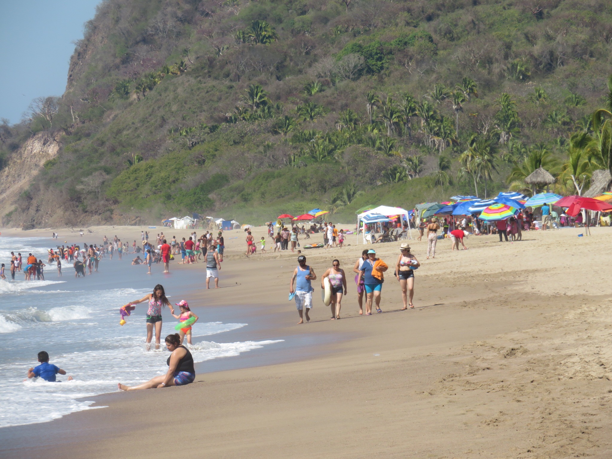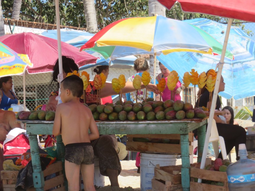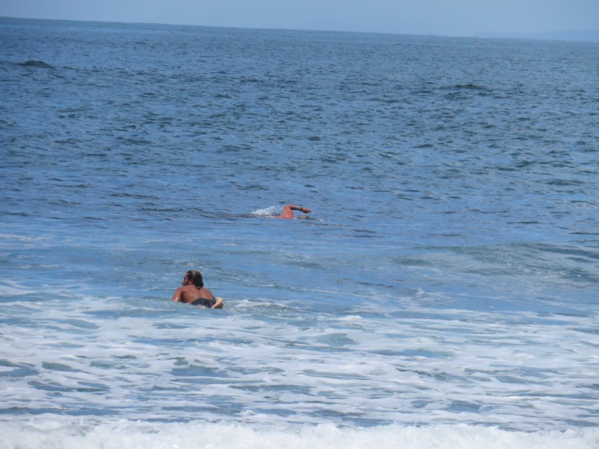 The weather has been amazing for their holidays. Mid eighties in the heat of the day and cooling down to mid sixties at night. Fortunately, the surf has been exceptionally mild, too small to even boogie board. But with all the young children playing in the water it is a godsend. I’m told last year there were 54 rescues and people were getting thrashed in the surf. PJ has taken on the Mexican custom of going out early in the day then holing up in the shade through the heat of the day only to reemerge in the evening when things cool down.