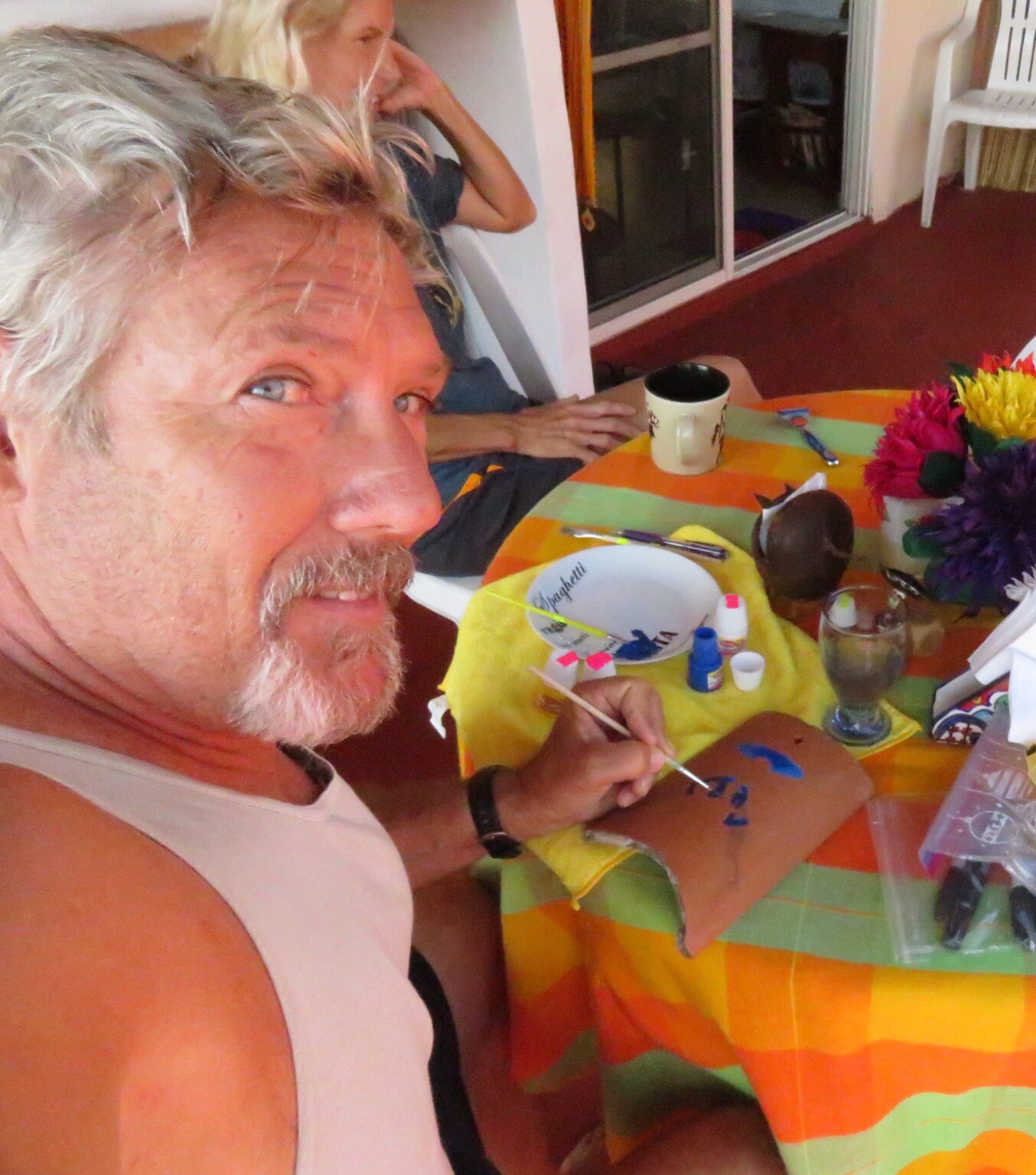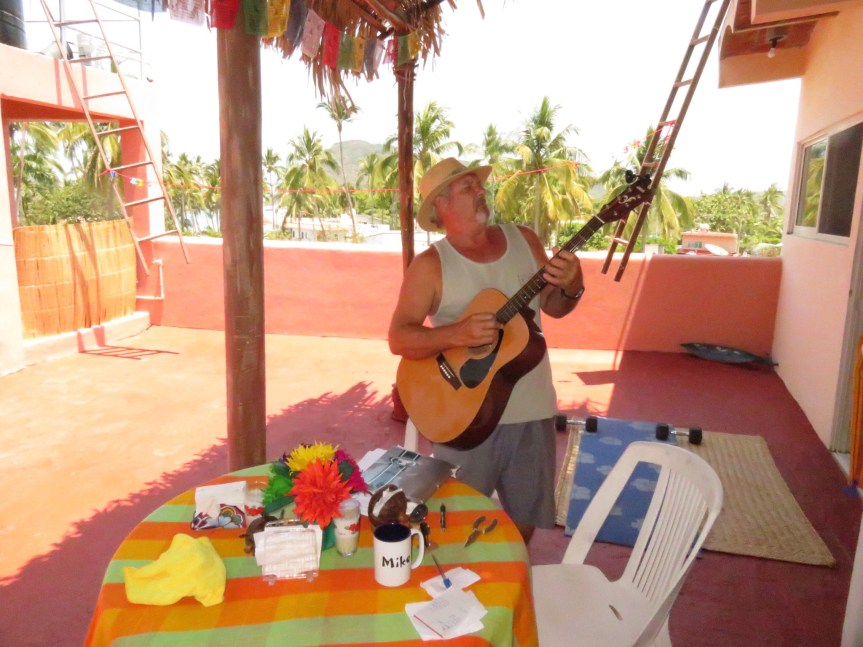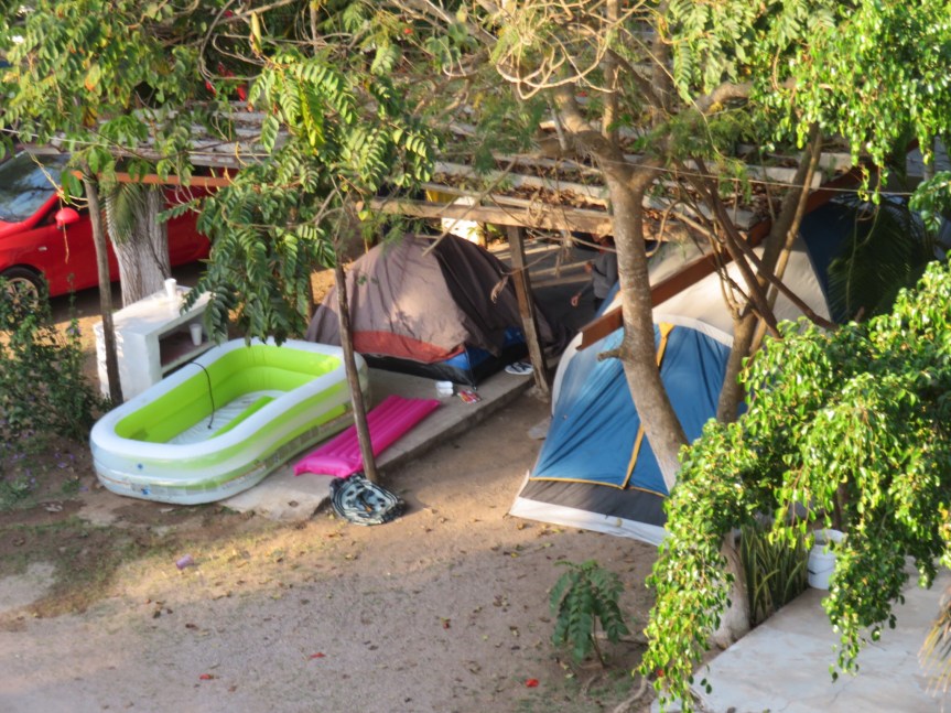 We spent a large portion of our days hidden away up on the terrace. We worked on learning some songs and tried some art. PJ found a stash of broken roof tiles and we are having fun throwing a bit of hobby paint on them. We go out and mingle with the crowd, but in all honesty, this hasn’t proven to be the most out going lot. The entitled kids with the giant stereo in the apartment right below us are downright hostile. It’s been an interesting week, with another week of vacation for some. Easter Sunday, the place emptied out, leaving maybe four campsites full of people. Miguel says there will be a few more coming but nothing like last week. Pretty calm, although the bombs keep dropping and the music, to a much lesser degree, still pumps from places off in the dark. It was worth hanging out to experience the excitement, but probably will leave for more peaceful environs if we’re here next time around. Sleep is a precious thing that seems to get rarer in the best of circumstances as I get older.