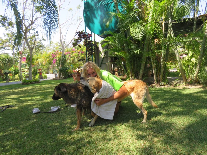 Saturday, we slept in. Took a long walk around keeping an eye on the papayas that getting close to ready on the west end of the property. Read most of a book and checked on the progress of the bodywork on the RV from time to time. By mid day it was primed and ready for paint. PJ rode the bike down to Coto Campestre and bought a batch of groceries from the mini-super.