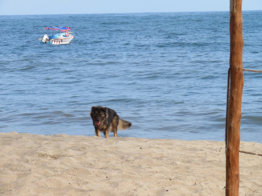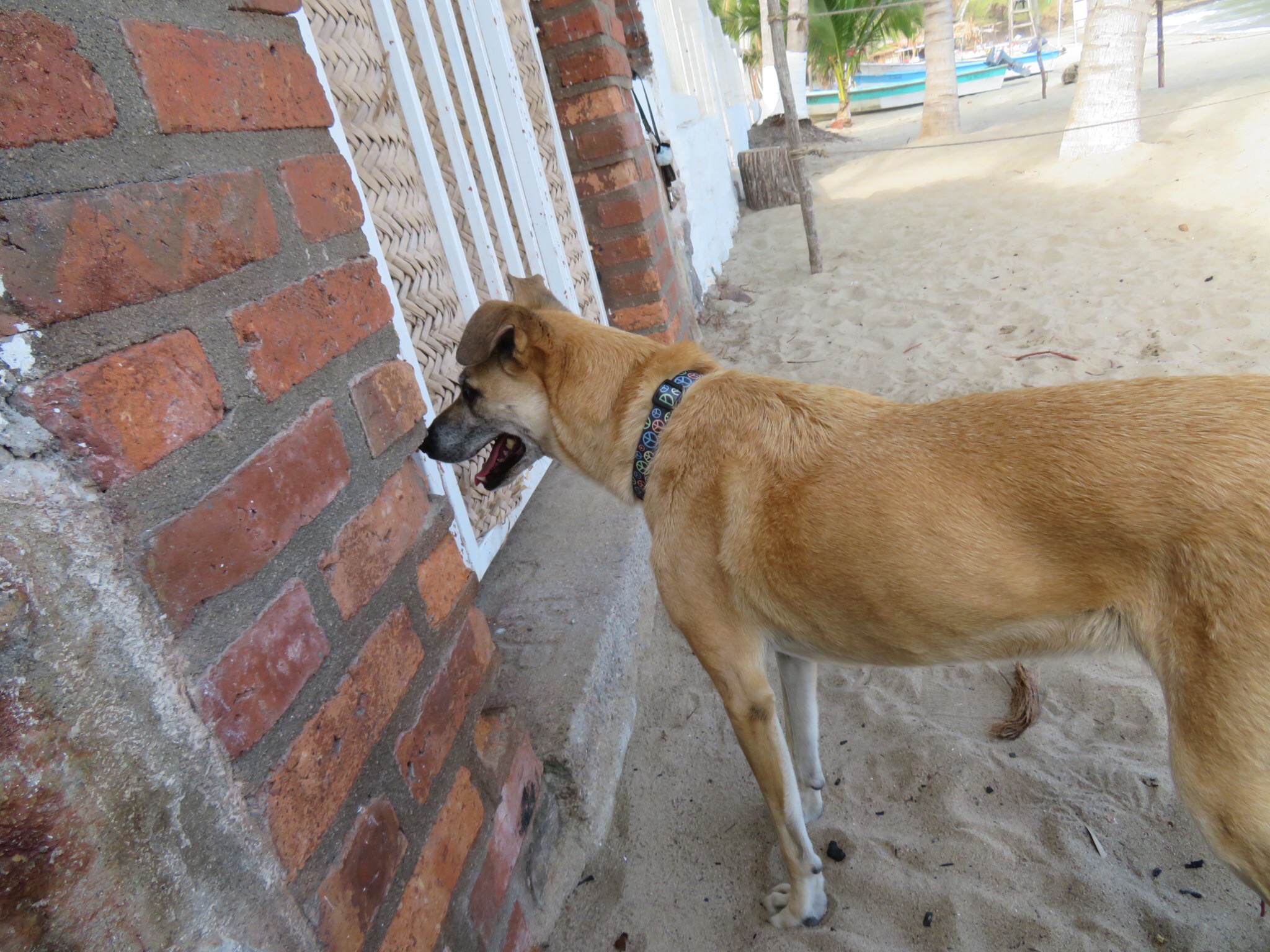 We returned to the beach and I sat out on the sand watching the water as Koda rooted around for dead things and Cali stood with her agoraphobic nose at the gate staring towards the sanctuary of our casa.