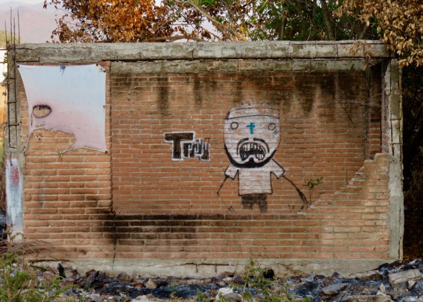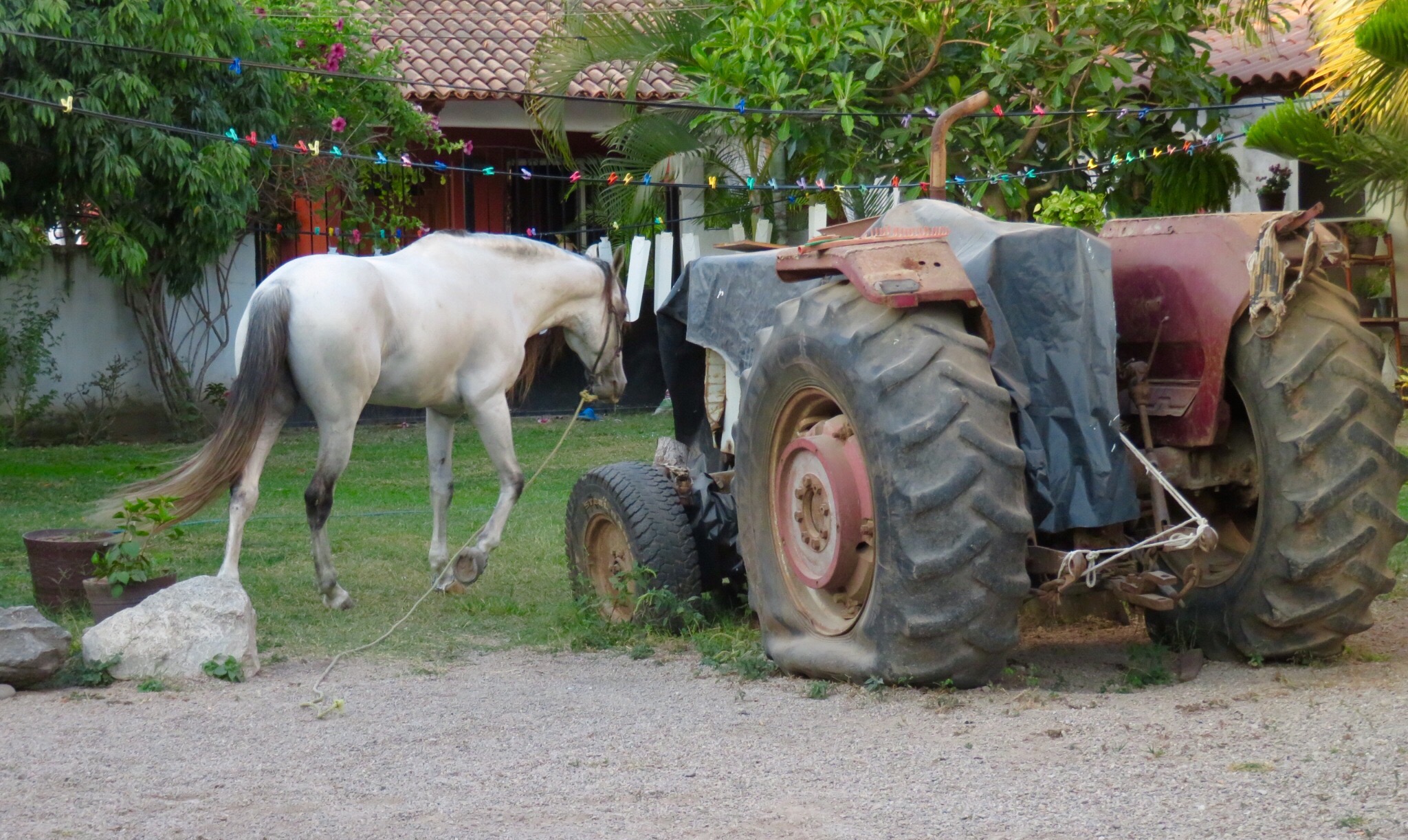 Quiet times around El Pequeno Paraiso. I’ve been starting my days with long walks exploring different neighborhoods. As I was wandering around a dirty back street, I saw an older guy coming towards me on a bicycle carrying a big stick. I jokingly asked him if it was to ward off the stray dogs in the barrio. He stopped and showed me his digging tool made from a stout branch with a hoe like tip. Gilberto is searching for minimally disturbed brush areas to hunt for an endemic plant that is purported to cure a cough. Being curious about local remedies, I tagged along and we grubbed around a couple of pasture areas with no luck, then he took off for the other side of the highway to continue his hunt and I steered the hounds back towards town.