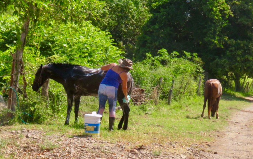 Adios Miguel and Nancy. We’re down to seven people in the entire compound after today. I spent most of the morning sitting on the deck working on the computer. Manuel has hired a couple of new girls to help out, but I mostly see them sitting around a table at Maria’s eating some home cooking. I took the dogs and we tried a few different roads as we rambled around town. On our return, we sat at the beach and watched the waves at the point.