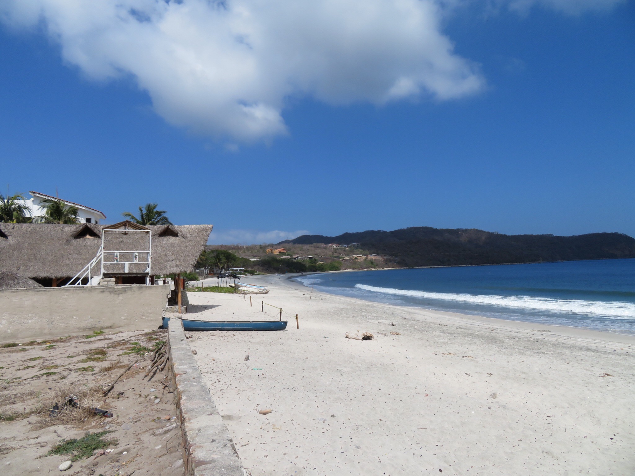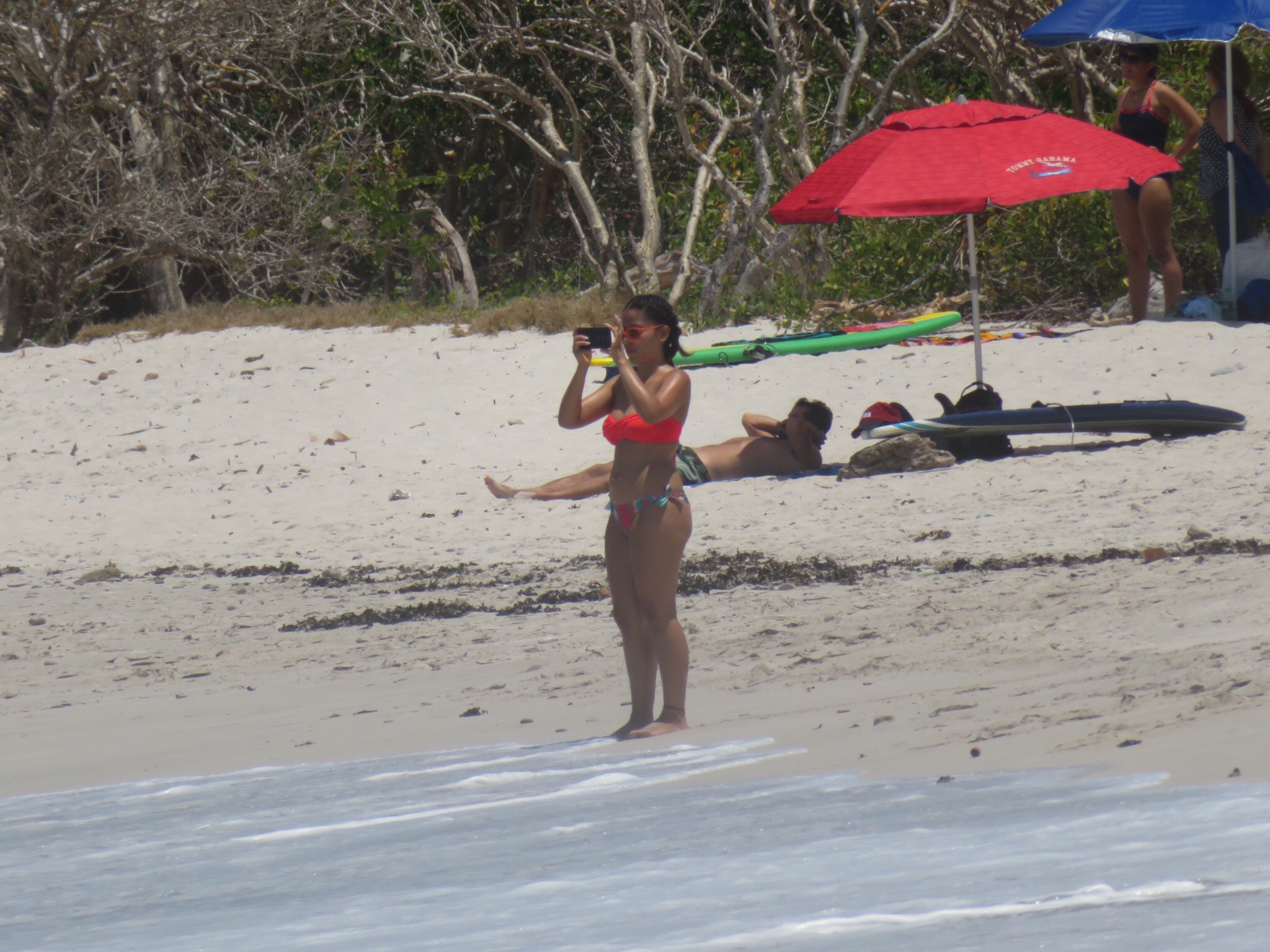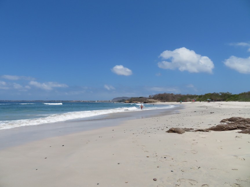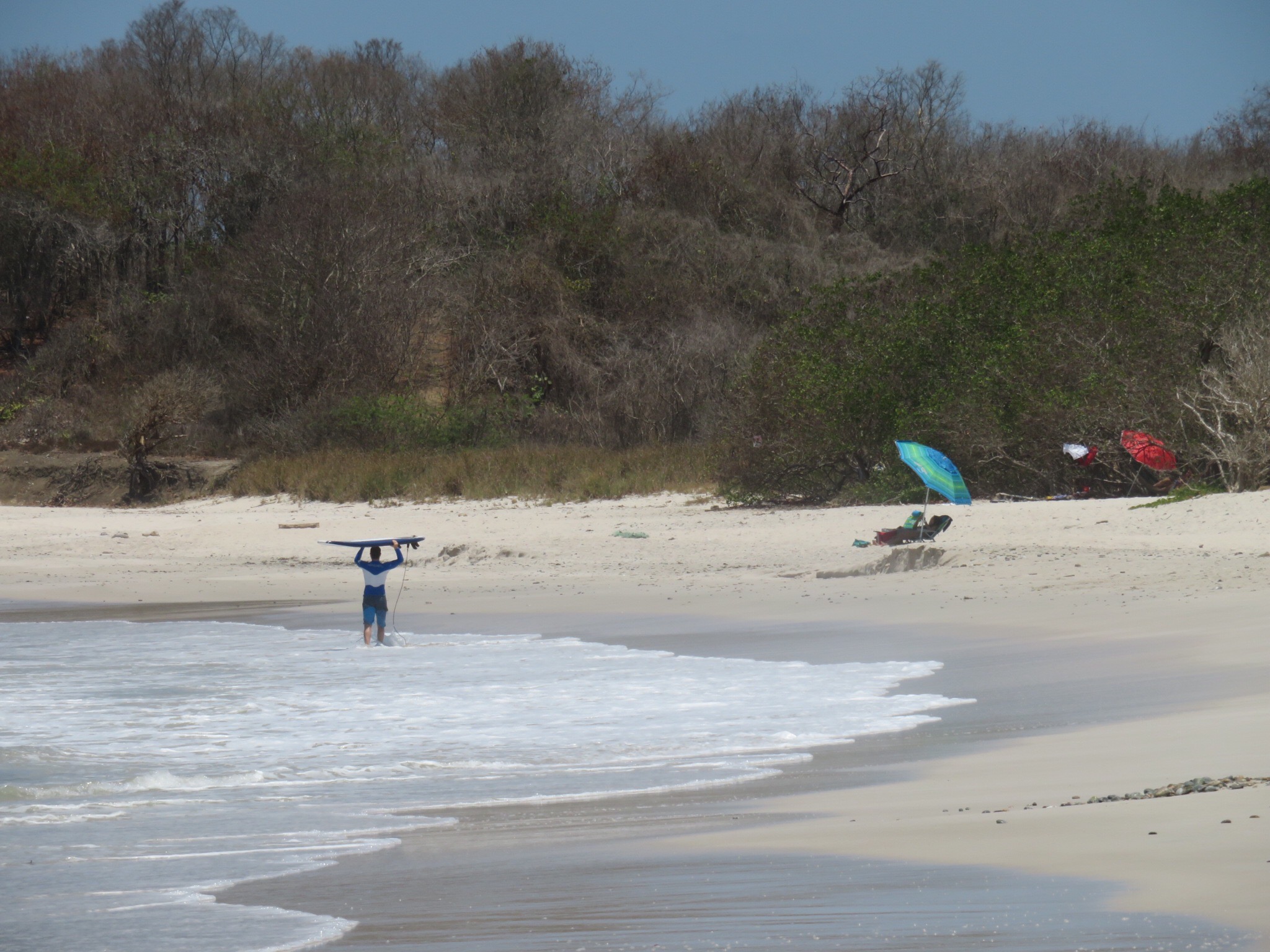 We passed by Shannon’s hotel and gave it a quick peek. It looks pretty elegant. I’m getting excited for his arrival Sunday. Just a half km down the road is Distilladeras. The old entrance was closed up, but next to the Nahui Resort, they have opened a large parking area. We locked up the Honda and went down to the beach. The restaurant from the resort has a large number of tables set up on the sand. Most of them were full and the waiters were hurrying awkwardly across the soft sand in their dress shoes. This is a 3 day weekend in honor of Mother’s Day, so there are lots of people from inland cities out for a beach getaway.