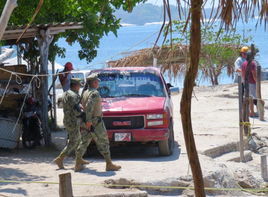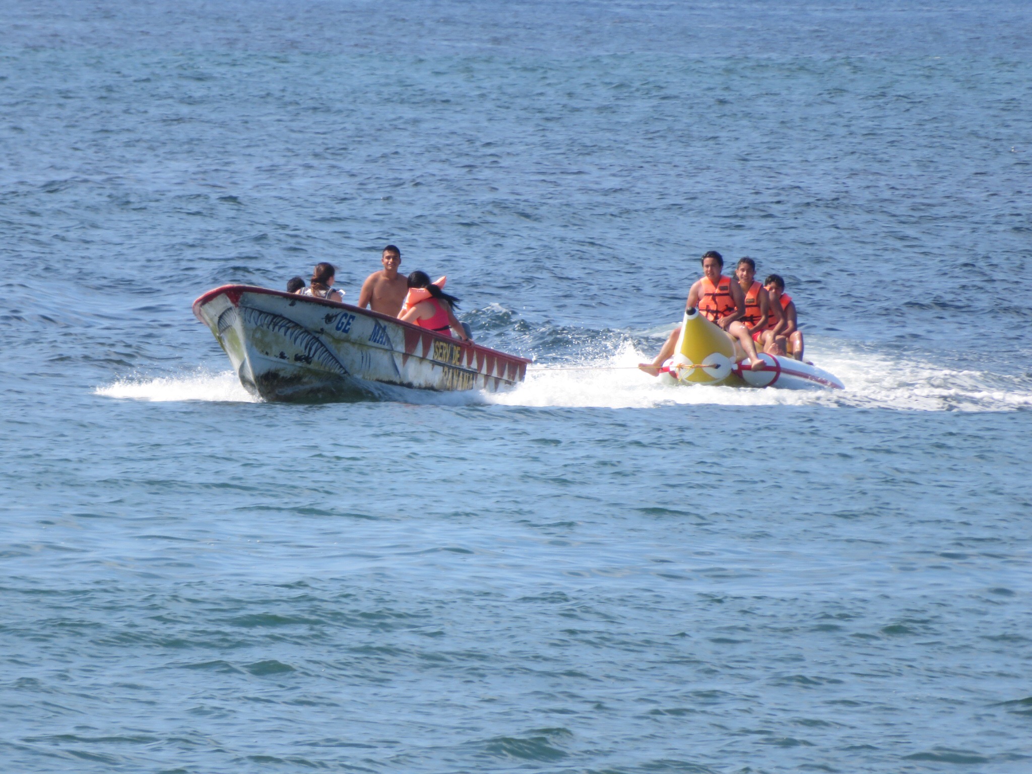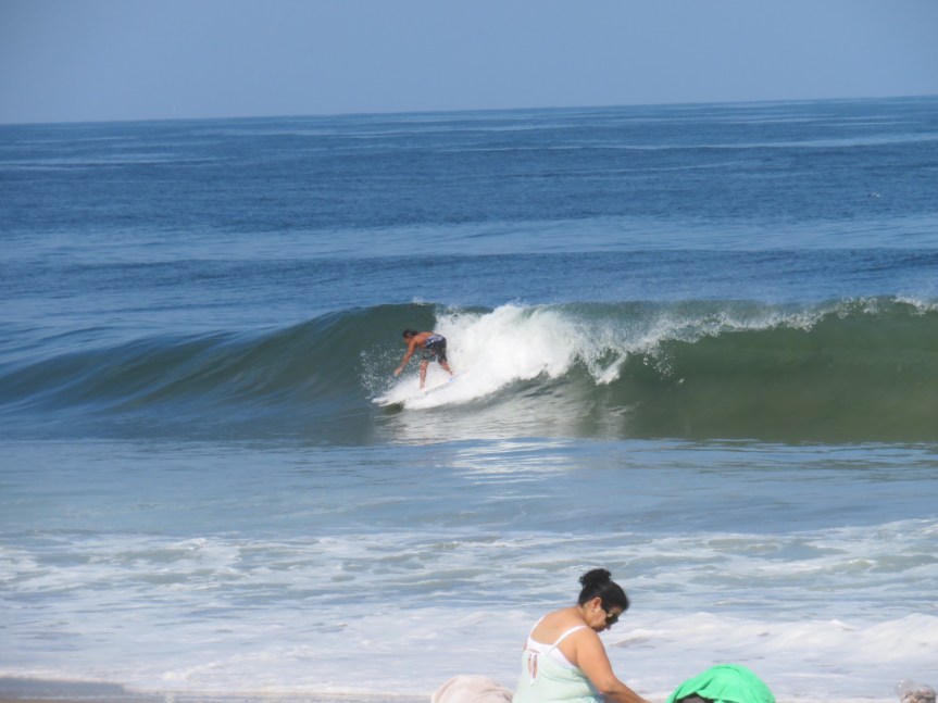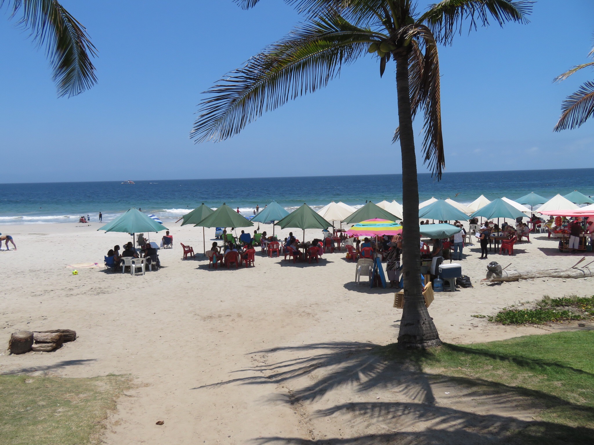 We passed by Shannon’s hotel and gave it a quick peek. It looks pretty elegant. I’m getting excited for his arrival Sunday. Just a half km down the road is Distilladeras. The old entrance was closed up, but next to the Nahui Resort, they have opened a large parking area. We locked up the Honda and went down to the beach. The restaurant from the resort has a large number of tables set up on the sand. Most of them were full and the waiters were hurrying awkwardly across the soft sand in their dress shoes. This is a 3 day weekend in honor of Mother’s Day, so there are lots of people from inland cities out for a beach getaway.