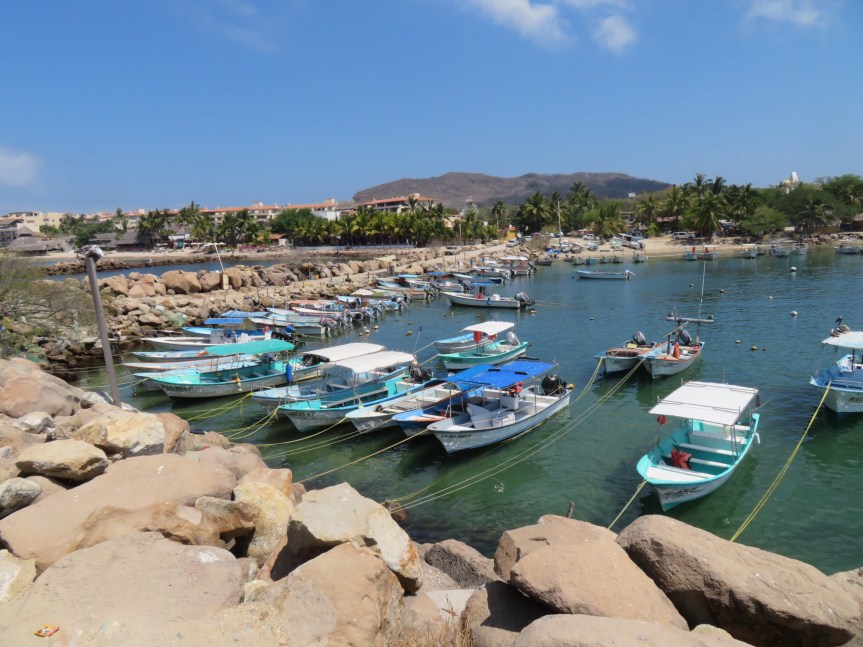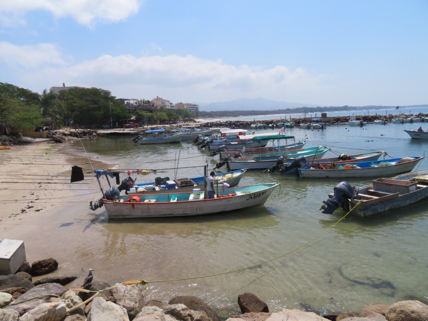 Our next stop was Punta Mita. We parked at the boat launch and dodging touts for tours and time shares, we walked out on the jetty and looked down towards the giant facility that is now the Four Seasons. The size of a small city, they own all the point from south facing to west facing. All beach access is closed to non guests. They selected the best beaches in the area, moved all of the residents off with either threats or promises of great benefits then left them all with very little in compensation.