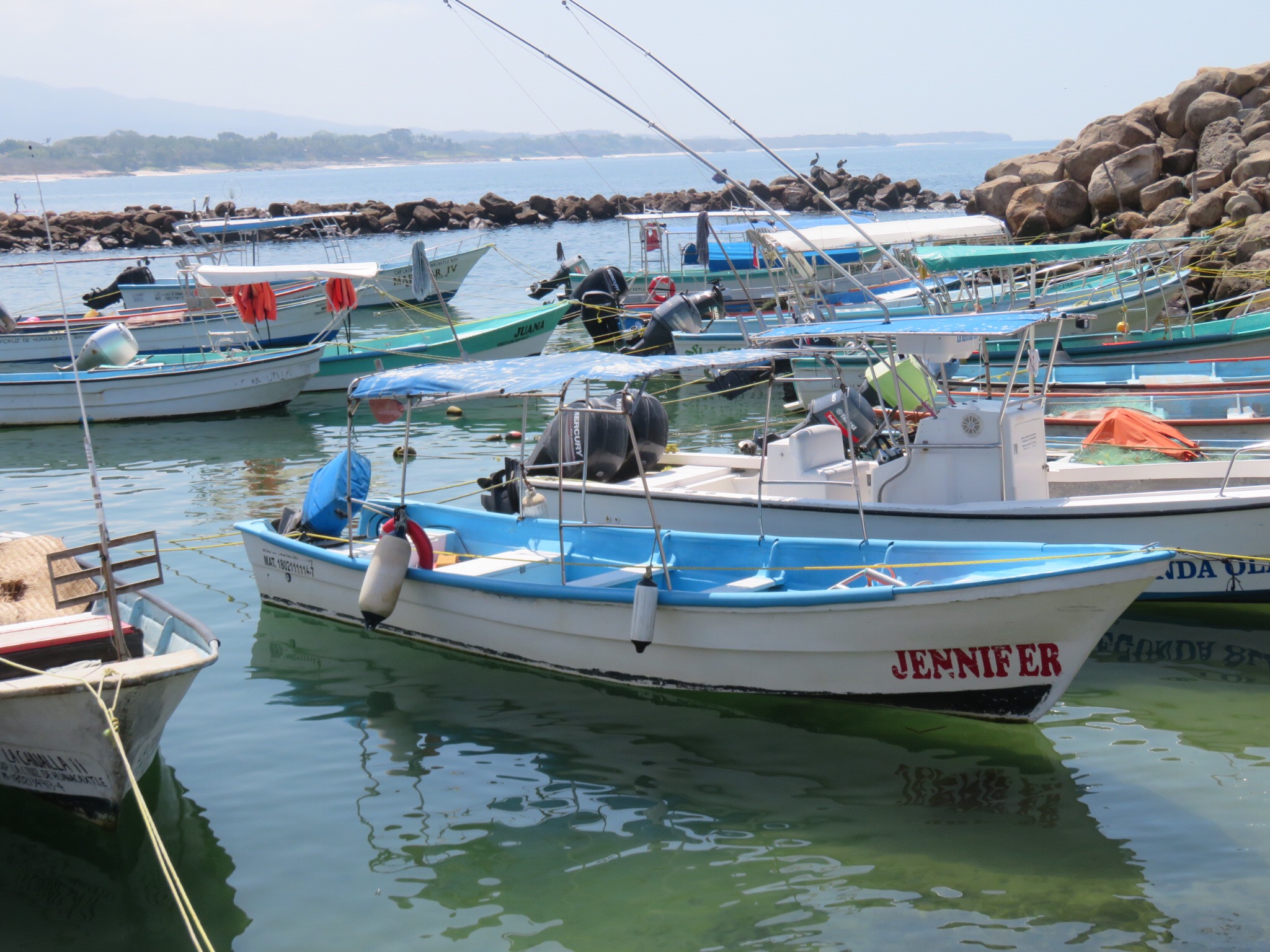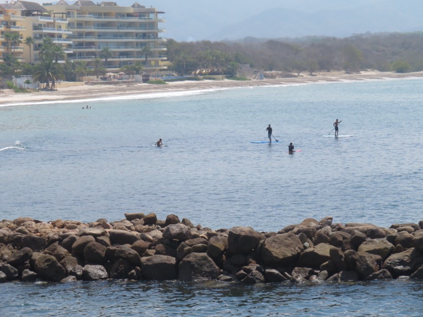 We stopped at another small marina where some surfers, mostly on SUPs, were catching some small waves in front of a high rise. Eduardo used to take tourists out on boat tours from here. His old boat, Jennifer, was still floating among the panga fleet inside the rock jetties.