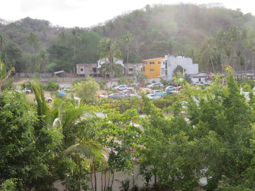 I was still eating my breakfast when Eduardo’s silver sedan showed up at the tower this morning. He came up and joined me then we figured out how to squeeze my board into his Honda. The rear seat folded down and it just barely fit inside. The new road into Sayulita had been completed and we drove down to the beach only to find that there was no parking available anywhere. Terminally congested and overhyped. We circled around once, then decided to shake the dust of Sayulita from our sandals and continue down the road.