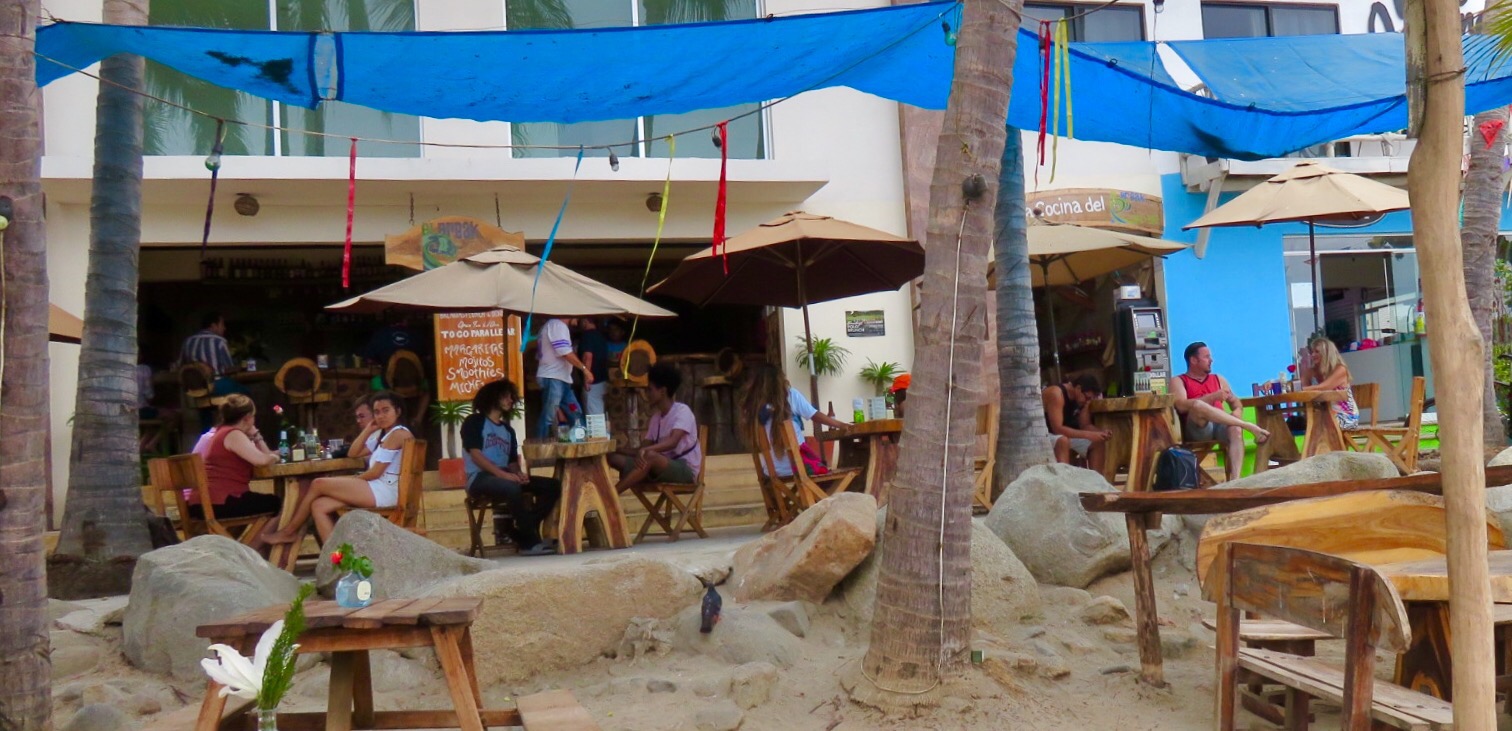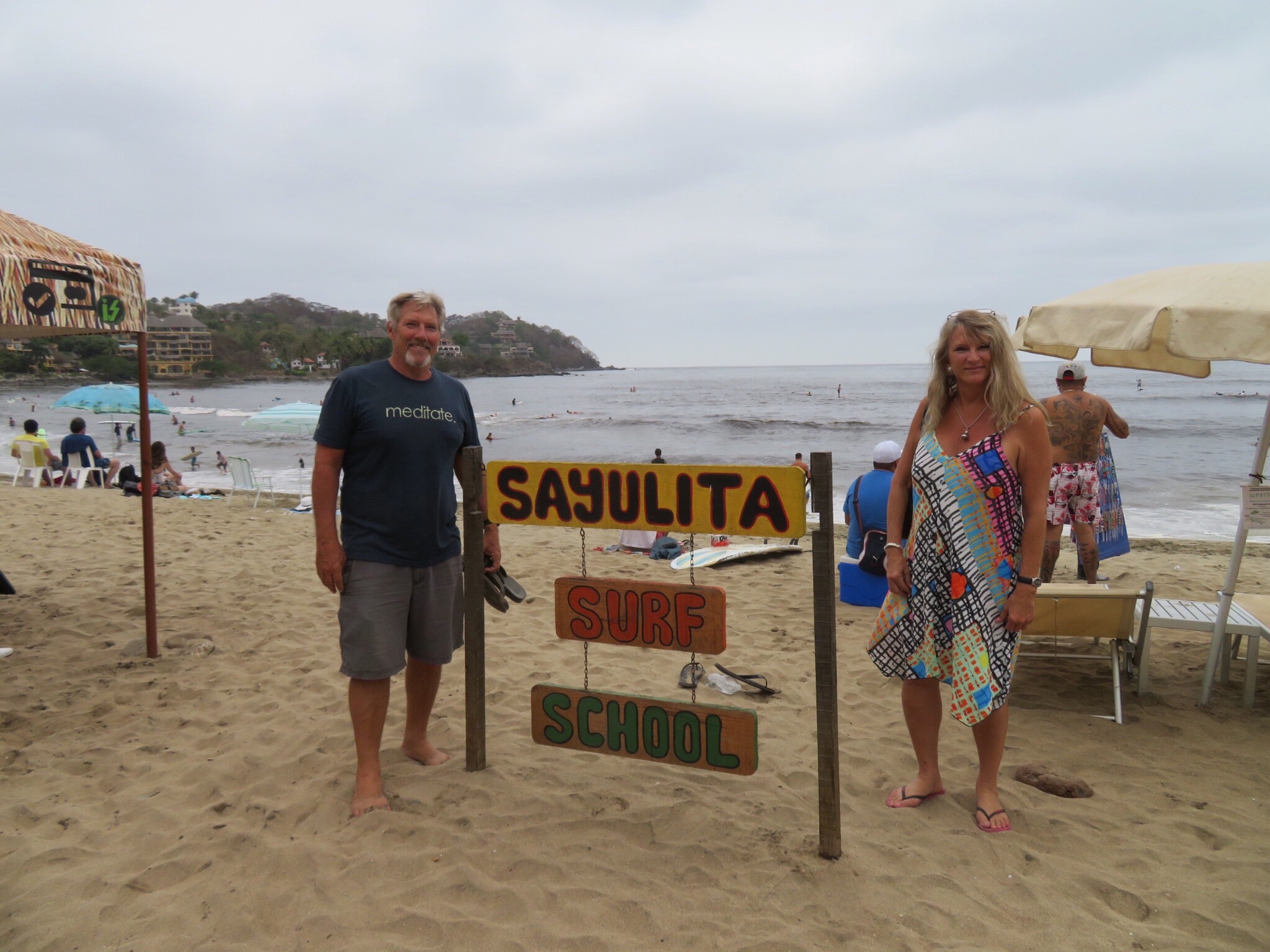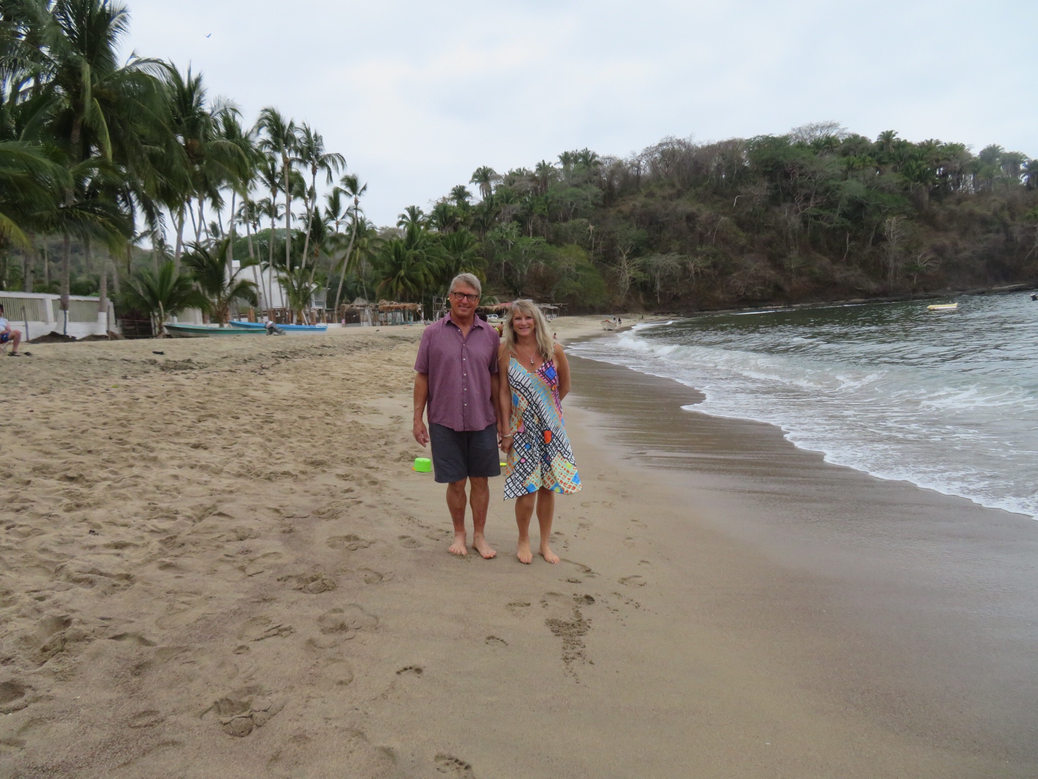 We went upstairs and sat on the deck catching up on the latest goings on. I gave them a quick tour of the pad and then we decided to head to the beach and have lunch at El Socio. We chose a table at the low end of the palapa being careful not to bump our heads on the beams. We ordered up some shrimp plates and enjoyed the fresh seafood while watching the other tourists swimming in the water and socializing on the beach. We talked a lot about retirement destinations and strategies. Like we used to do all of the time, Linda and Shannon have been studying ‘International Living’ magazine and watching House Hunter International type shows. After lunch, the plan developed to go and have a look at San Pancho and Sayulita.