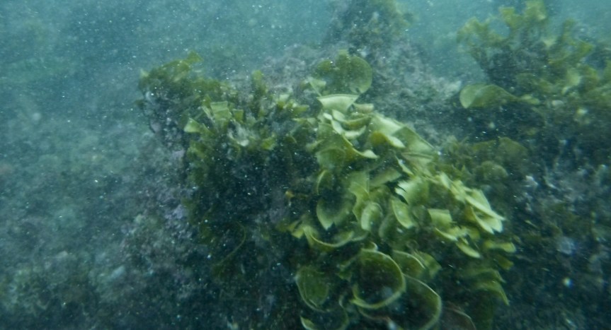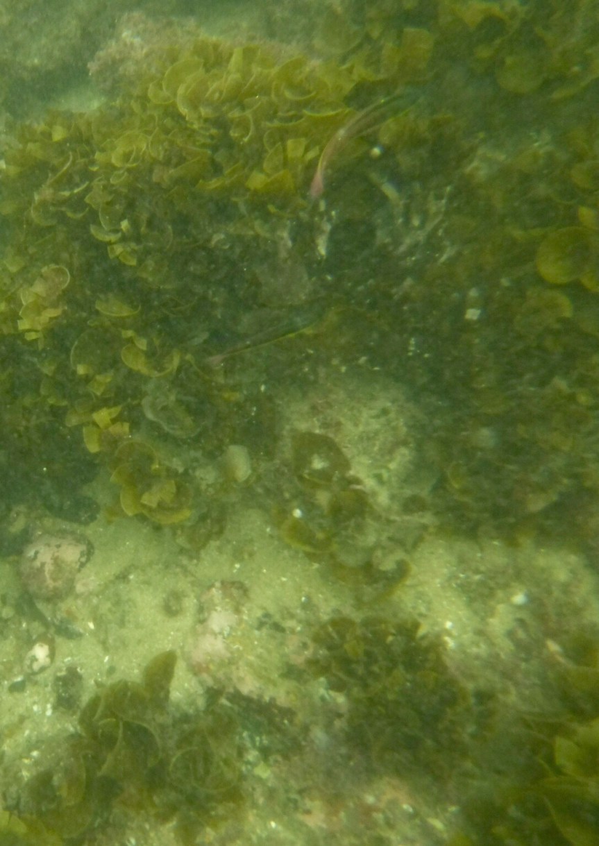 I mostly vegged out on the deck drinking tea, but at around 11:00, I roused myself and took my new underwater camera out to the point for a test drive. I swam out towards the rocks and took a few photos. I tried to get a few fish in there, but they are wiley little characters and proved hard to pin down. The sky was overcast and the wind had the water a little cloudy as well. Neither of which helped inspire quality photography. But the camera has potential and I think it will work fine for taking photos for fun.