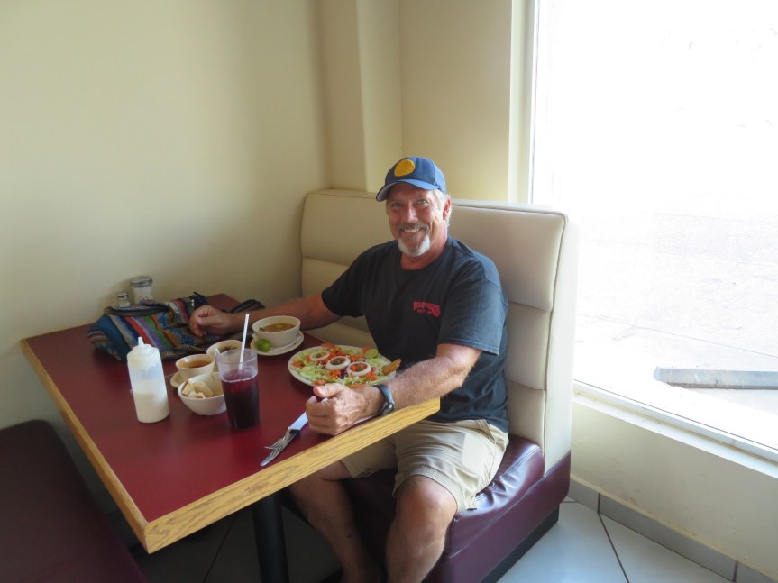 We took a break at a rest stop next to a toll booth. There was an old guy foraging in the trash looking for food so I gave him a package of crackers and a cold water. We didn’t tarry long. Just putting in the hours behind the wheel. The road between Culiacan and Los Mochis was rough in a few places, not full on craters but potholed enough to make driving in a motorhome uncomfortable with things banging and shifting around inside the rig.