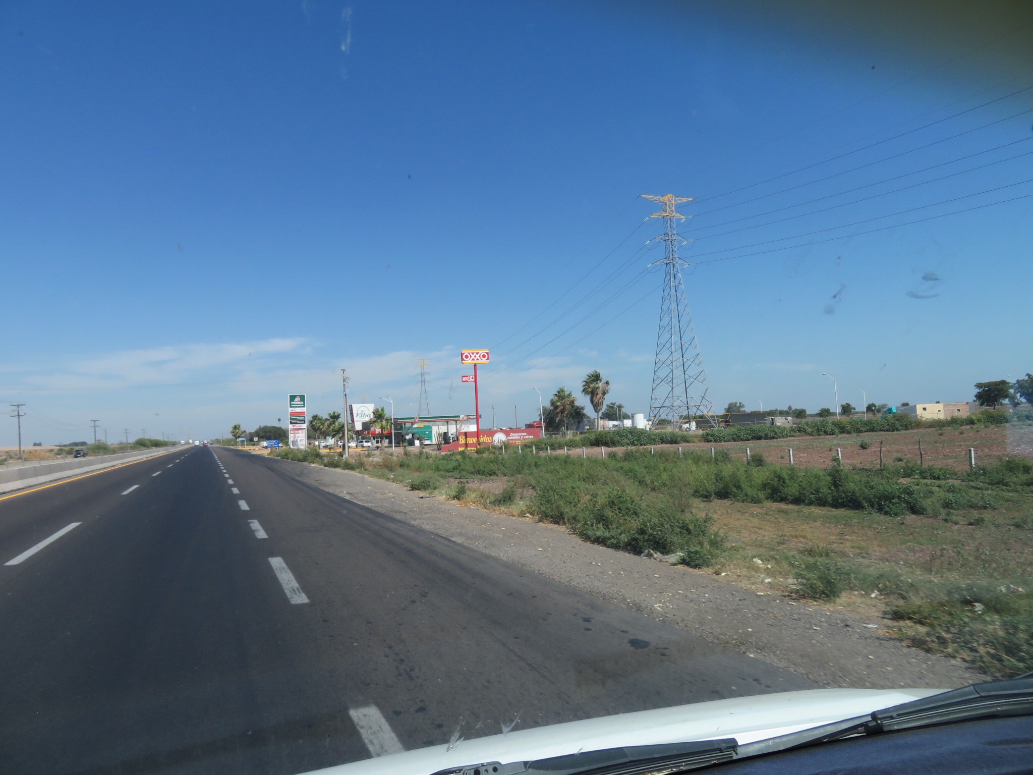 We took a break at a rest stop next to a toll booth. There was an old guy foraging in the trash looking for food so I gave him a package of crackers and a cold water. We didn’t tarry long. Just putting in the hours behind the wheel. The road between Culiacan and Los Mochis was rough in a few places, not full on craters but potholed enough to make driving in a motorhome uncomfortable with things banging and shifting around inside the rig.