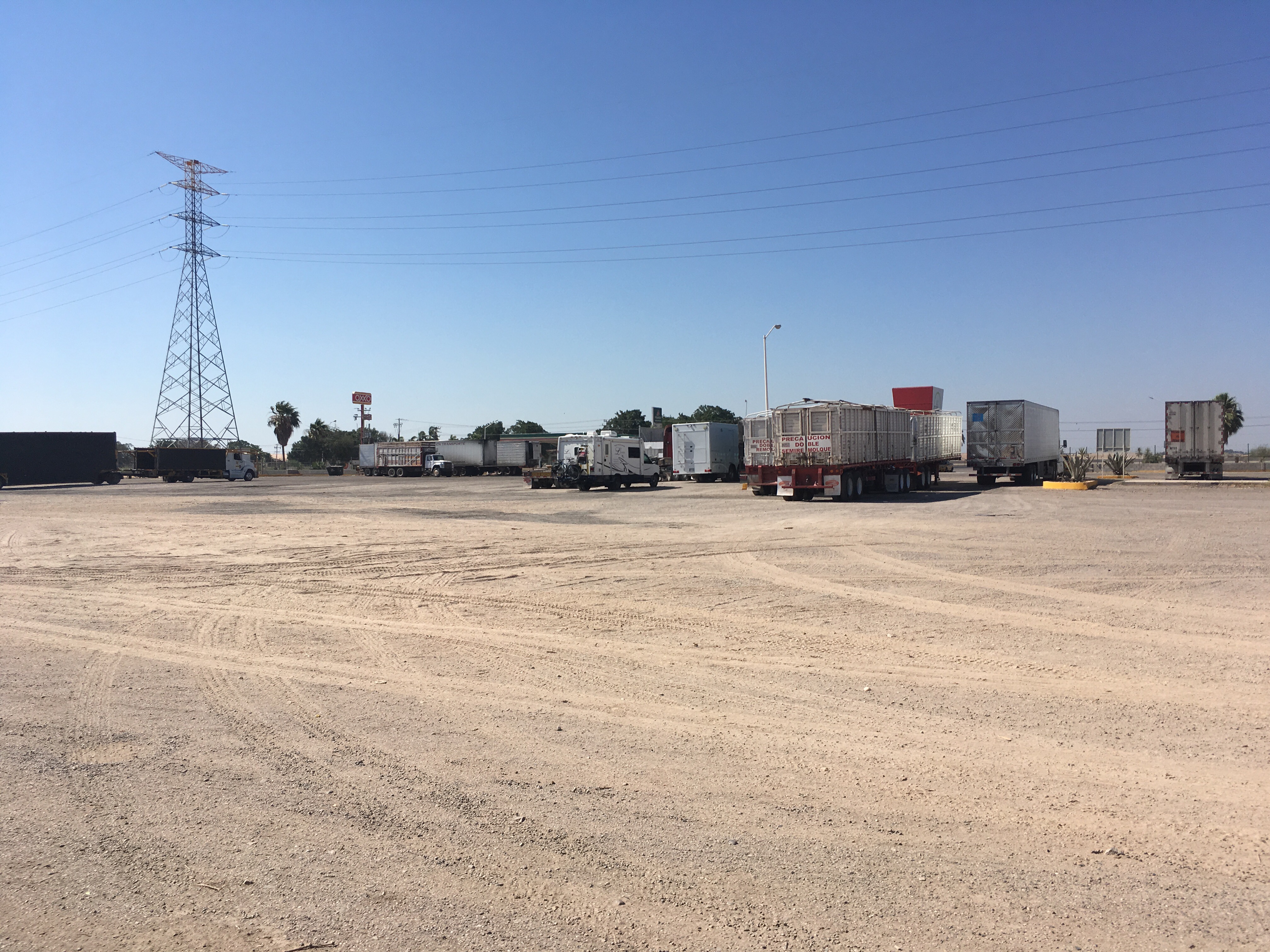 I spotted the Restaurant Elba at Km 192 and had to go a mile or so past to come to a u-turn to come back around. Gassed up at the Pemex then drove into the big dusty lot and hid myself behind a big truck. The girls and I took a tour around the compound sinking into the fluffy soft dust that is layered about an inch deep over the hard surface. Like powdered sugar. I talked to a couple of truckers who were polishing their rig. Totally tranquilo here they assure me. Not like the one up in Los Mochis. Which one, I don’t know, but if it’s not tranquilo, I’m glad I’m not there.