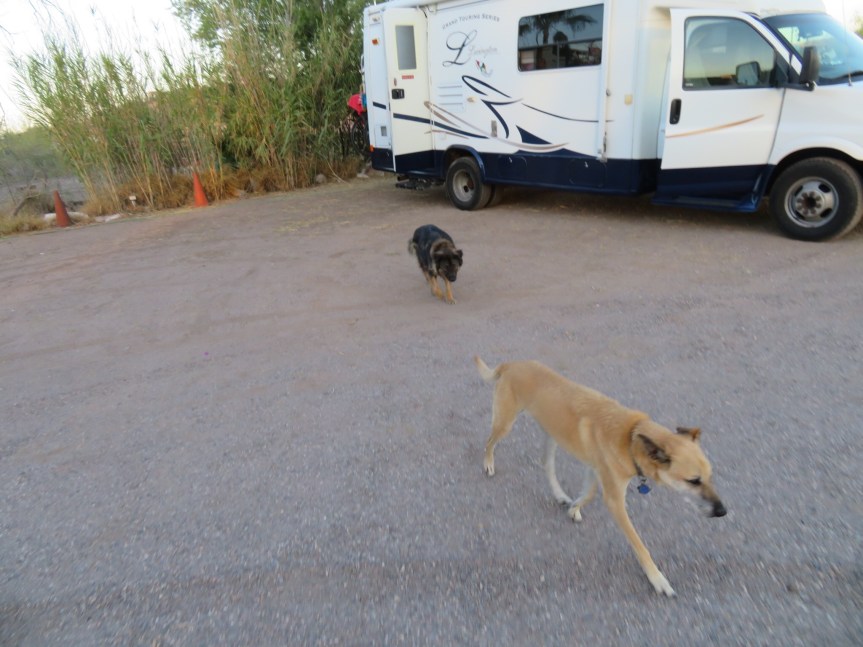 The young man asked the usual questions, made a comment about the TRUST license plate and sent me on. What about this paperwork I’ve got assembled for the dogs? Just move along and have a nice day. Ten minutes max. Lukeville is the place. I probably shouldn’t be saying it. Keep it to yourself.